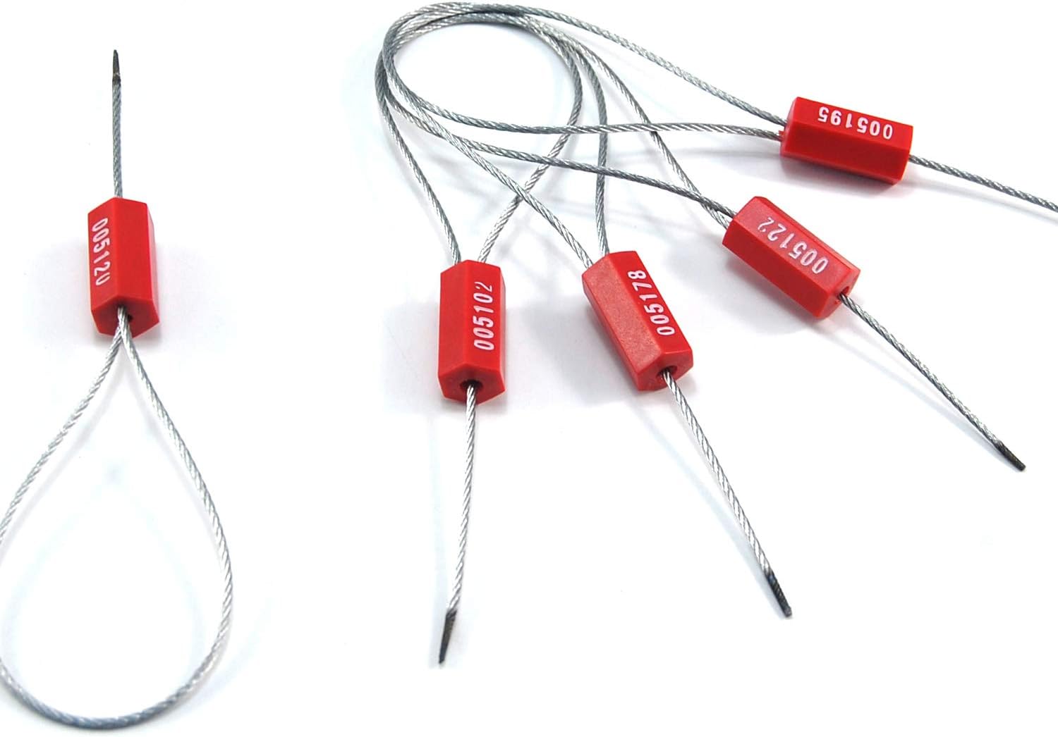 Leadseals(R) 500 Red Security Cable Seals Metal Truck Trailer Seals Tamper Proof Security Tag Seal Disposable Self-Locking Shipping Security Tags Numbered(Pack of 500 PCS)