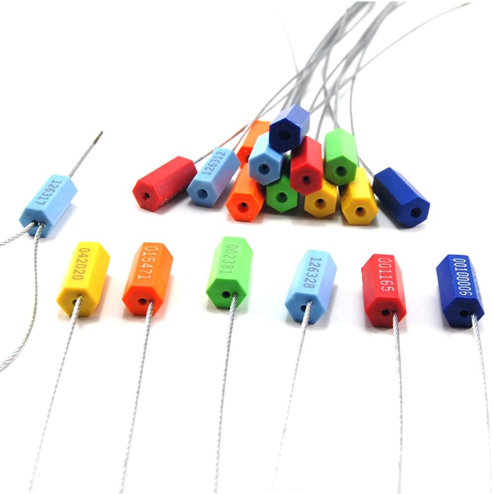 - This Security Seal material: ABS Plastic Coated, Steel Lock and zinc casting for this shipping seals, φ1.8mm (0.07") Steel Wire, Total length: 300mm (11.8")