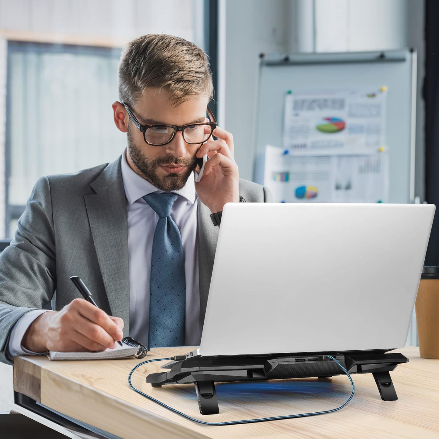 - ✔【Ergonomic Design & Non-Slip Baffle】Laptop cooling pad with ergonomic design is comfortable in all-day using. Laptop cooler stand can be hidden when you don’t use it. Two non-slip baffle can prevent your laptop following down on slanting surface. Also have enlarged and thickened anti-skid pad at the bottom keep laptop stable.