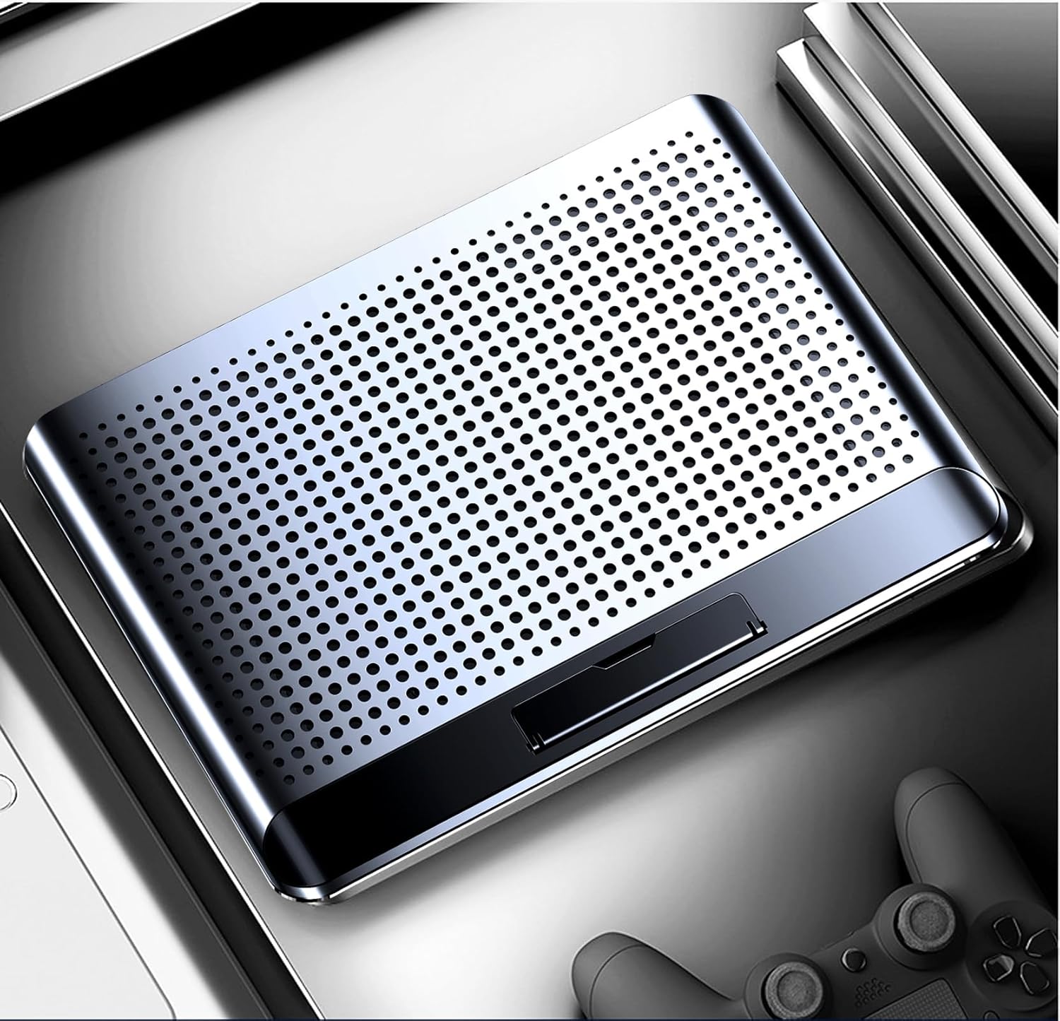 16inch Single Fan Lap Chill Mat - Aluminum Panel Laptop Cooling Pad, Heat Protection Laptop Cooler, Adjustable Foldable Long Stand, Fans Switch with dimmable-Speed, USB-A Connection Laptop Fan