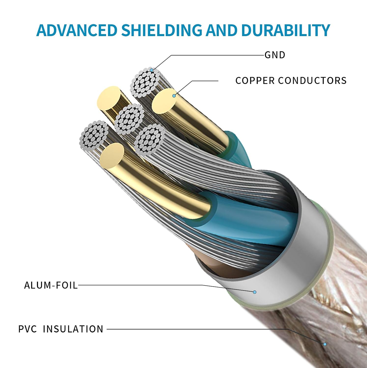 - 【Super Performance】: Thick tin-plated 2824AWG copper core decreases the transfer impedance and ensures the stutter-free signal transfer. The triple-shielded (foil/braid/ground) provides the maximum resistance from EMI/RFI and superior signal quality. The four-core structure ensures the different signal won't interfere with each other.