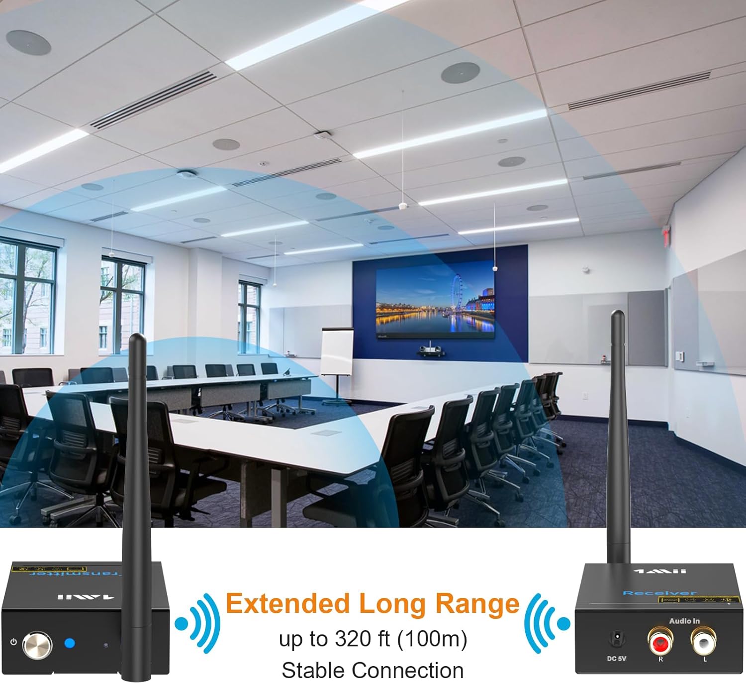 - Special Feature : Audio Transmitter and Receiver w/ RCA Input& Output, HiFi Stereo Sound, Long Wireless Range 320ft (100m), Plug and Play, Wireless Subwoofer Adapter 2.4Ghz Low Latency Audio Transmitter and Receiver w/ RCA Input& Output, HiFi Stereo Sound, Long Wireless Range 320ft (100m), Plug and Play, Wireless Subwoofer Adapter 2.4Ghz Low Latency