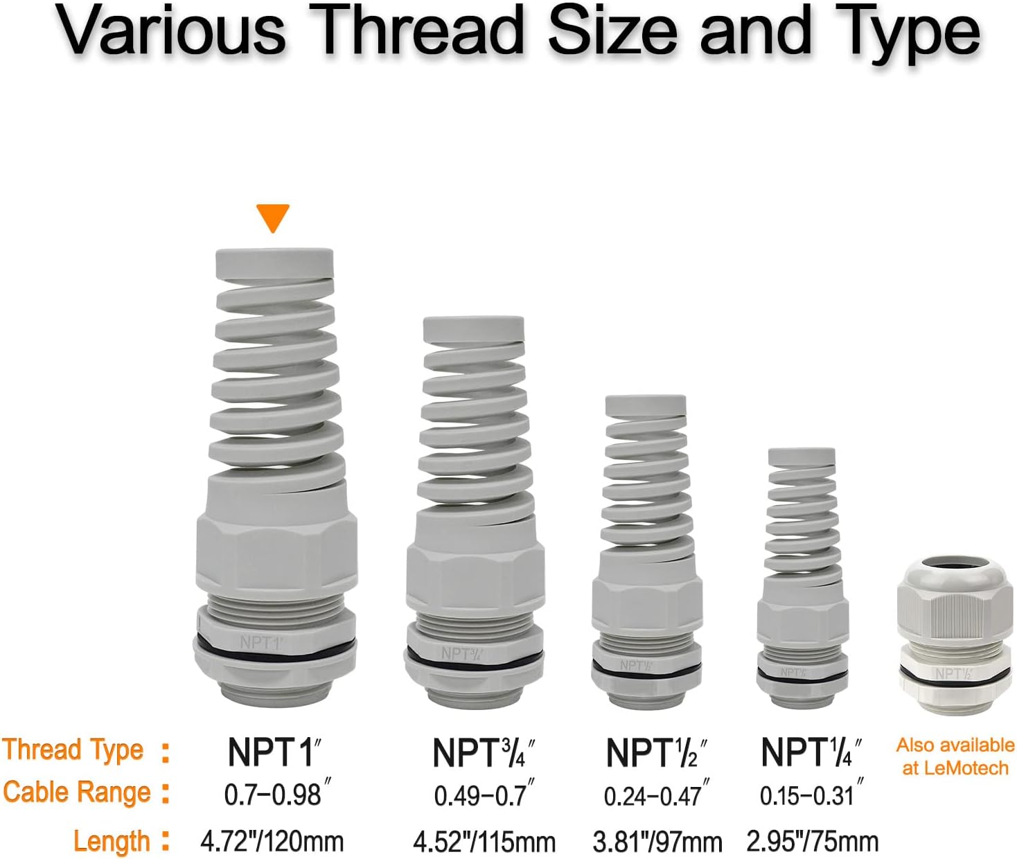 - NPT Gland Thread: Cable glands kit has NPT 1" 2 packs in total. Adjustable range strain relief to cables and wires connecting to electrical equipment including junction boxes. Spiral design makes a better protection for wires.