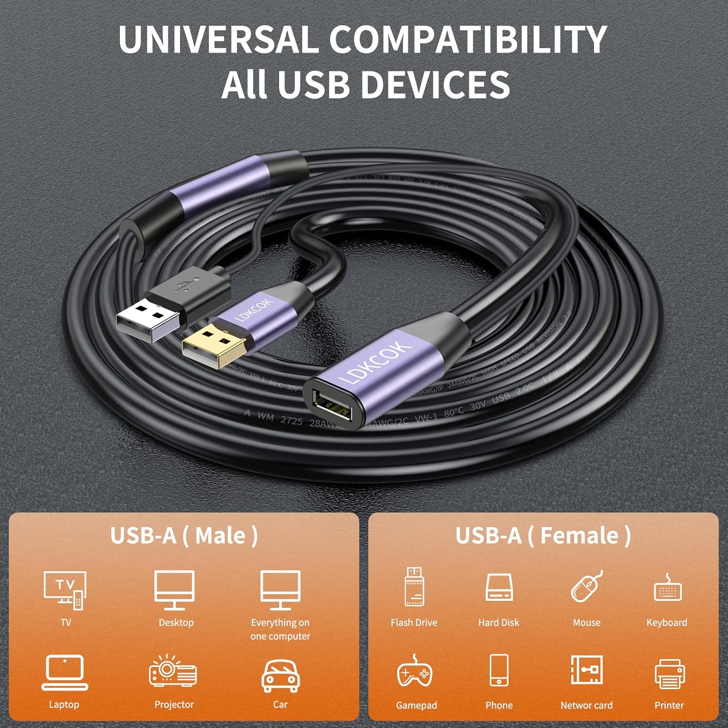 - ๐ USB Active Extender: LDKCOK USB 2.0 active extension cable provides the convenient way to extend your USB peripherals to computer, Wireless Network Adapter, 4G/5G Network Adapter, Wifi Receiver, Printer, Scanner, Camera, USB display Adapter, Mouse, Keyboard, USB flash drive, PS controller and other computer peripherals. This product is equipped with USB A auxiliary power supply line, which can be used in more application scenarios. Important Note: It cannot be used for charging devices.