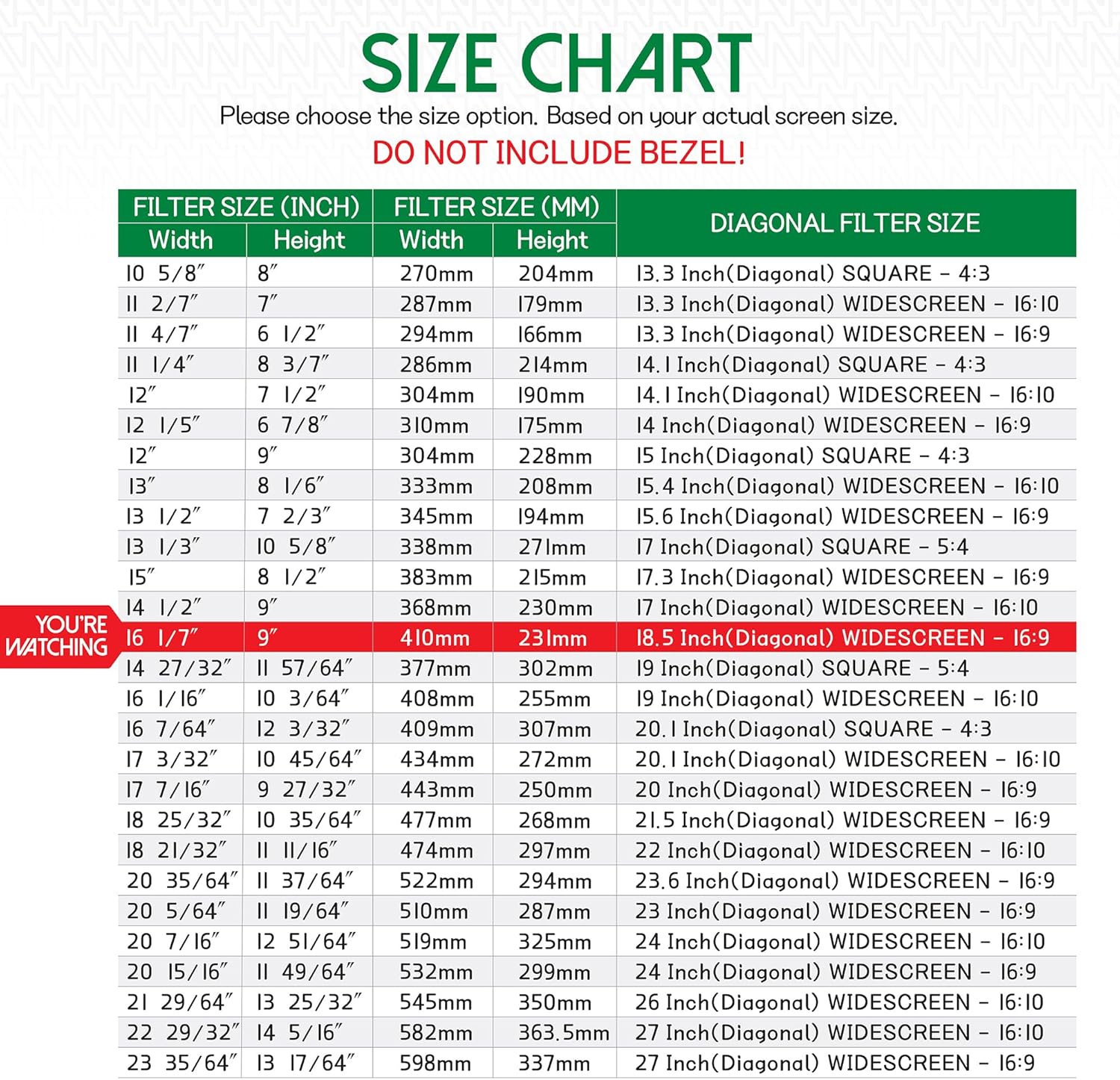 - ☘️ FILTER DIMENSIONS - Width: 16 1/7" (410 mm), Height: 9" (231 mm), Diagonal: 18.5"W9 ANBAC ATTACHMENT TYPE PRIVACY SCREEN FILTER is compatible with all major brands such as HP, Dell, Samsung, Lenovo, LG, Acer, ASUS, ViewSonic, and the others. Please check your screen's width and height measurement in order to purchase the right filter for your screen size. (We advise that you DO NOT DECIDE your order only based on your screen’s diagonal size).