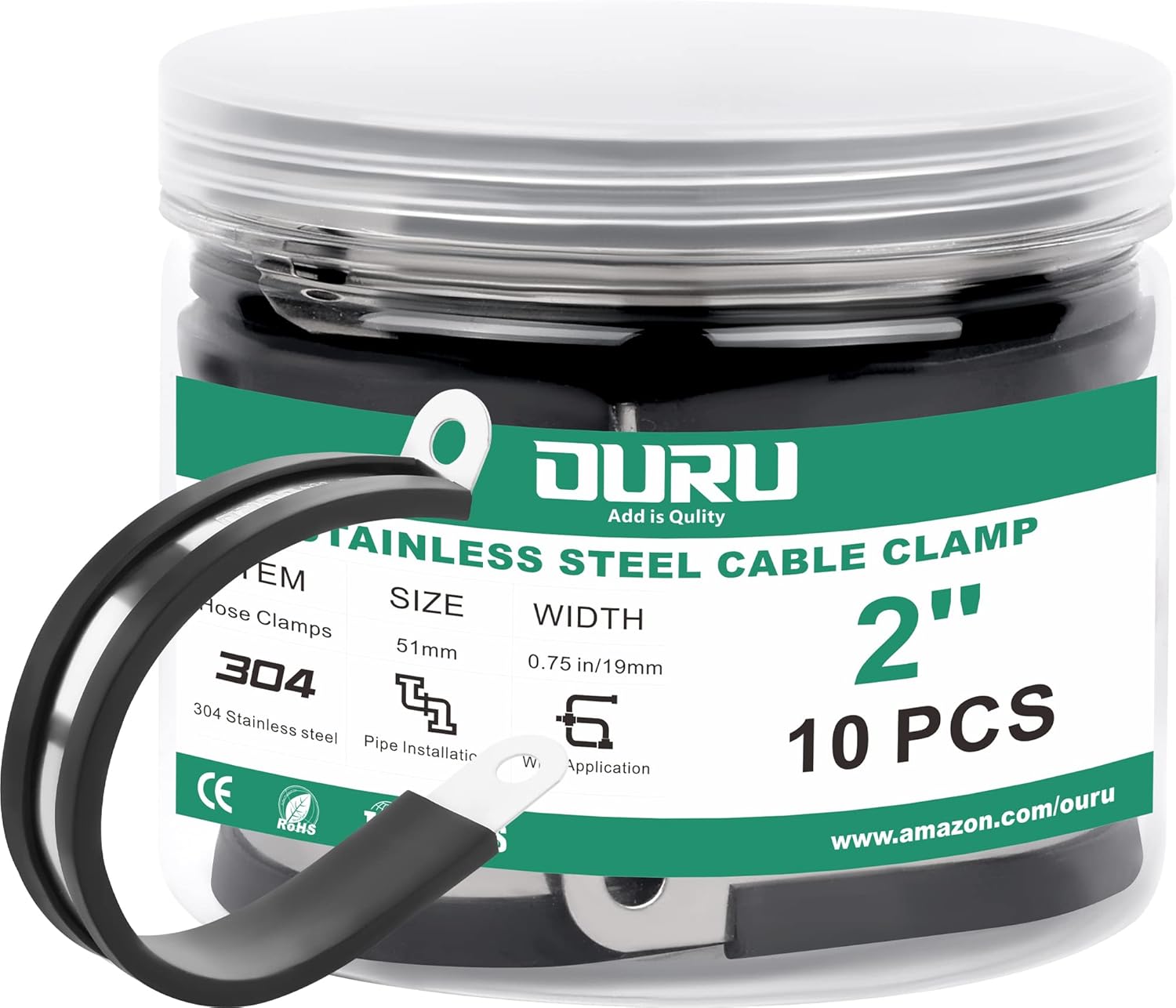 - OURU Insulated Cable Clamps Kit —The stainless steel hose cable clamps box set contains 10pcs 2" p-clamps.Fit for 6M( 1/4 inch) screw bolt to through the screw hole