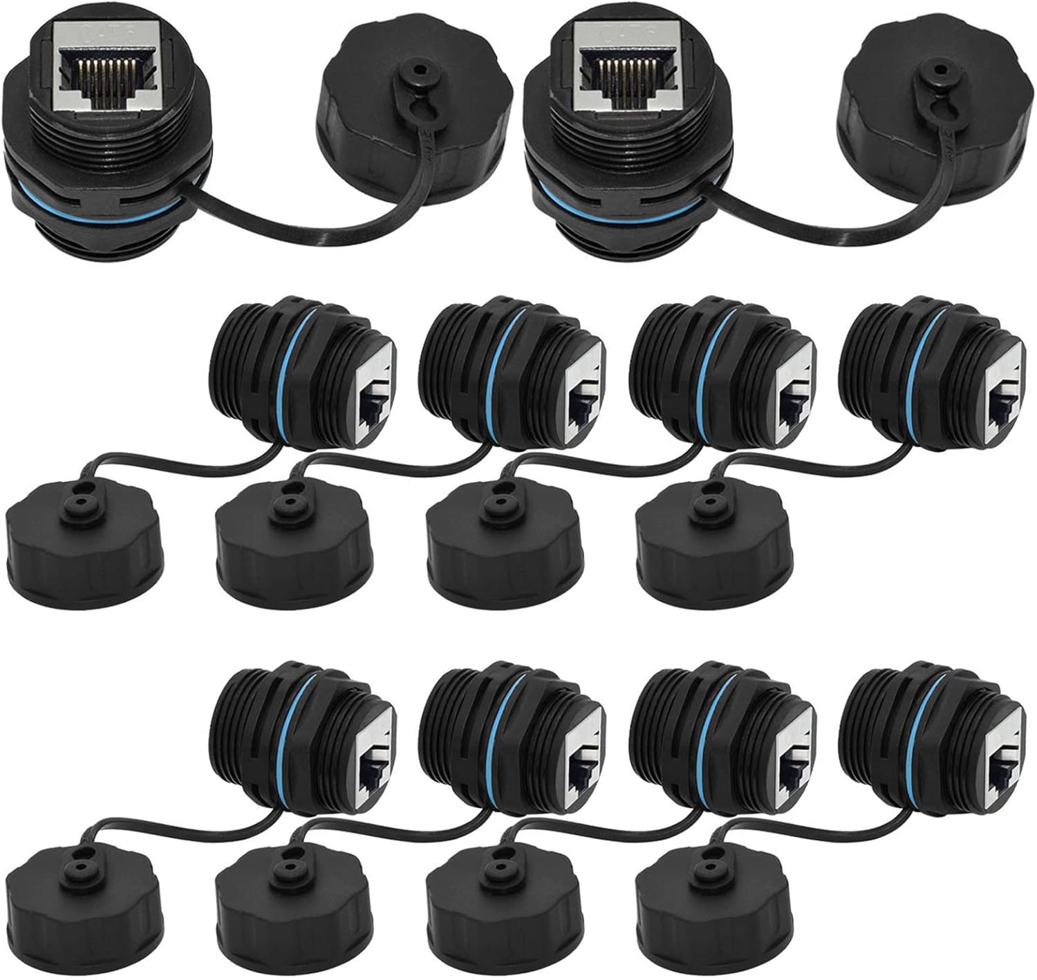 10PCS Panel Mounting Shielded CAT6 RJ45 Waterproof Connector Cat5/5e/6 8P8C Ethernet LAN Cable Coupler Double Head Adapter with Waterproof/Dust Cap