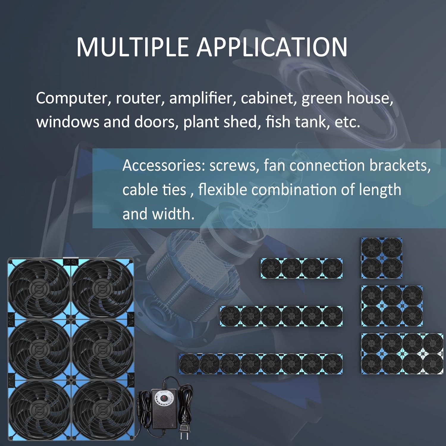 120mmx6 720mm Adjustable Computer PC Vent Fans 3V-12V Speed Controller for Flexible Arrange Cabinet Rack Space Window Wall Server Mining Rig Chicken Coop Exhaust Cooling