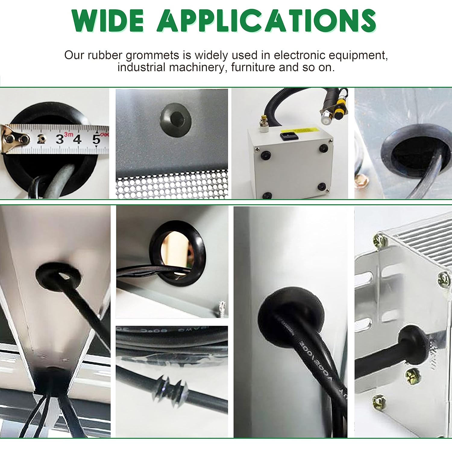 - Function: Rubber cable hole plugs are dust-proof, insulated, flame-retardant; This rubber grommet assortment kit helps protect wire and cable from sharp metal edges According to the thickness of the cable, the diameter of the rubber hole plug can be freely cut to and protect the cable from dust and rain