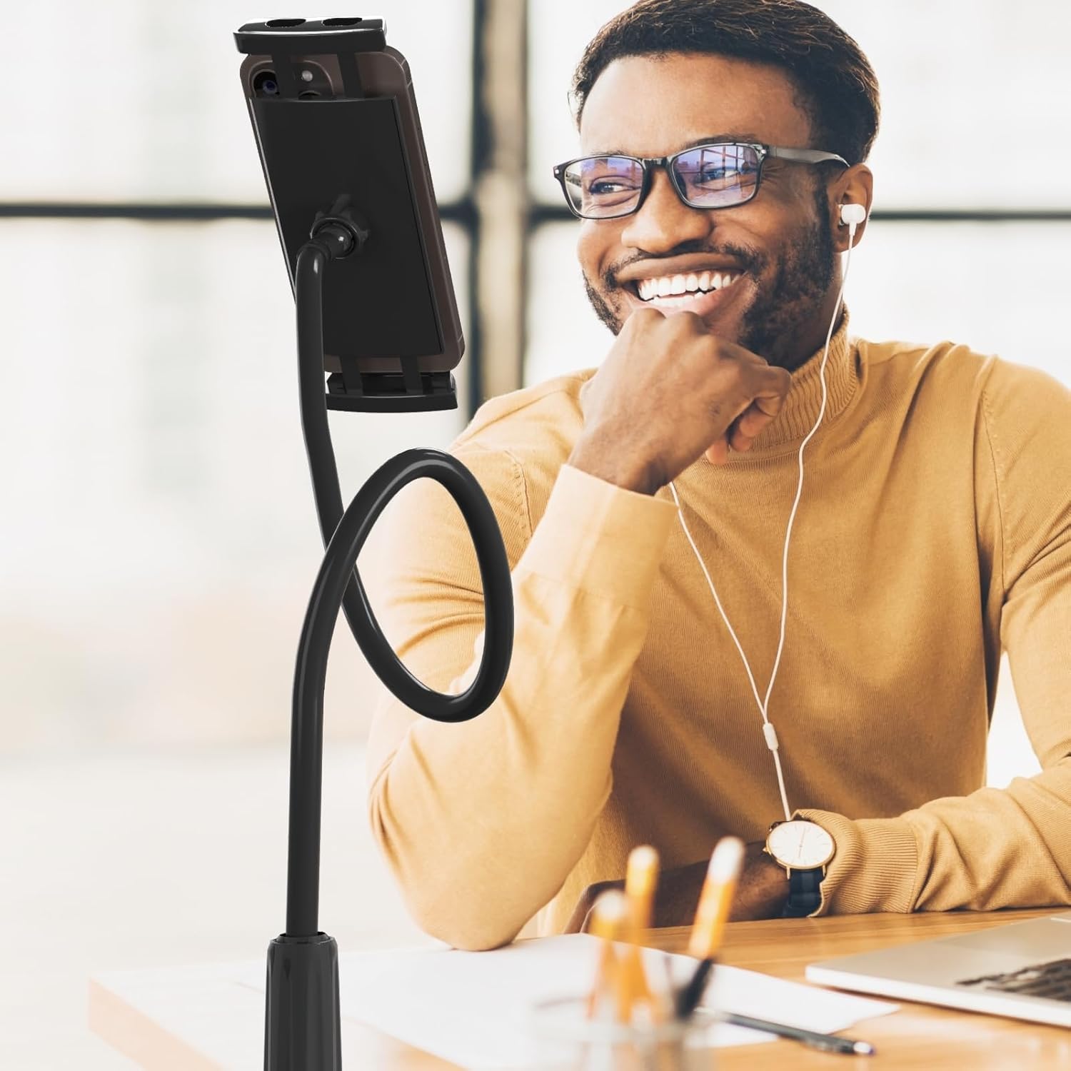 - UNPARALLELED QUALITY: Experience the quality with our adjustable phone stand, meticulously crafted from the finest high-grade materials for premium build quality and unmatched durability. Precision engineering ensures superior performance, guaranteeing a long-lasting solution. The gooseneck's base clamp, featuring a robust non-slip grip, provides a secure hold without causing scratches or damage to the mounting surface. Elevate your device with confidence, enjoying a perfect blend of style.