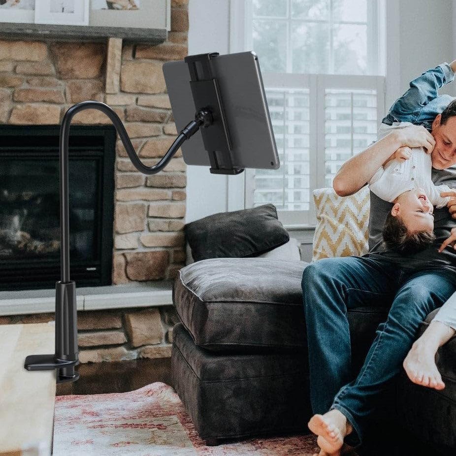 - CELLPHONE STAND DESIGN: Our phone holder boasts a unique design with a long, flexible gooseneck and a robust clamp, offering unparalleled adjustability in height and distance. Unlike regular mobile stands, this stand allows personalized positioning to meet your specific needs. The sturdy clamp ensures unmatched stability, safety, and convenience, providing a reliable solution for hands-free phone usage. Experience the flexibility and reliability of our adjustable cellphone stand.