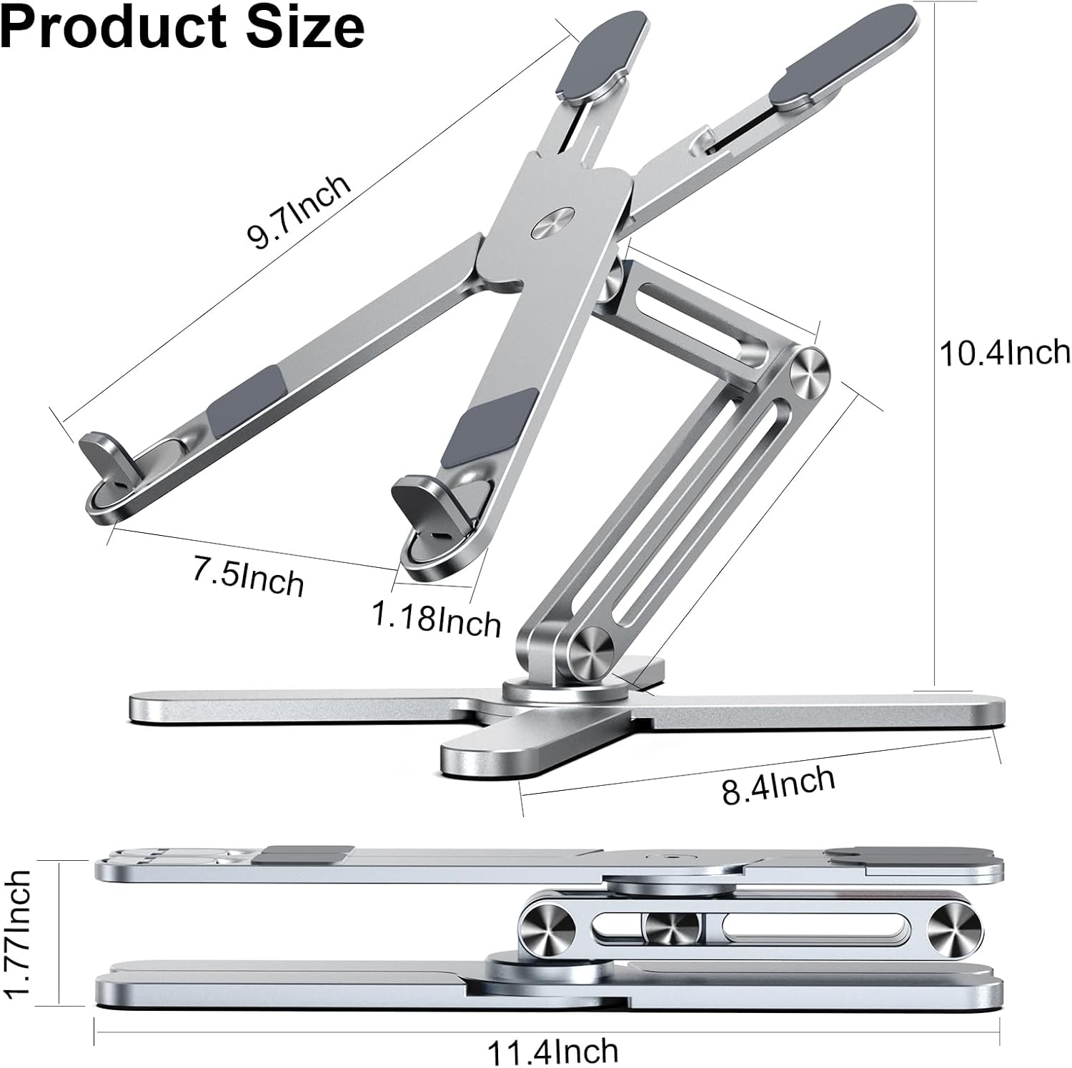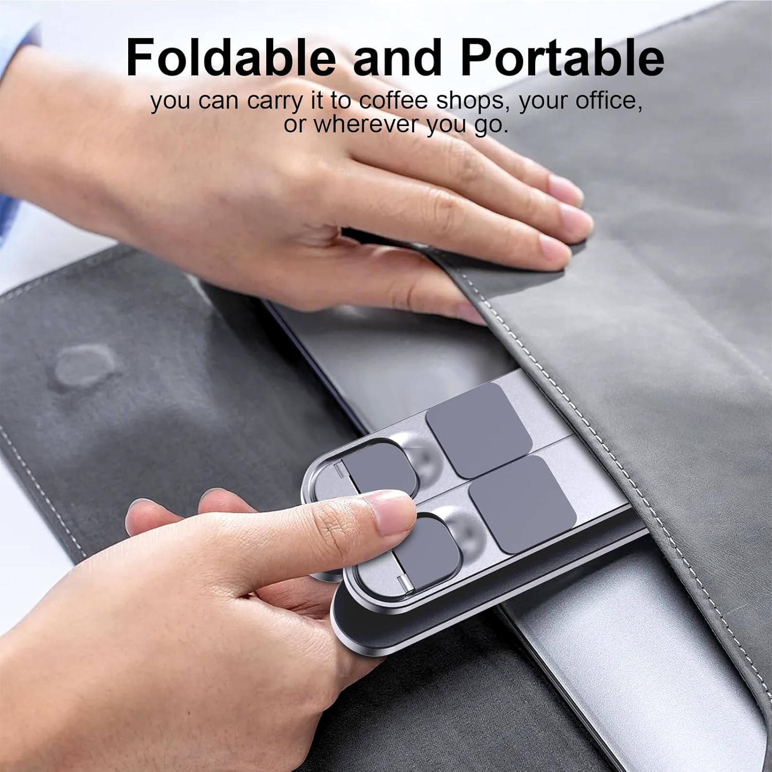 - Foldable & Portable: This adjustable laptop holder is designed to be used anywhere. Just fold this laptop stand for your desk, then you can carry it to coffee shops, your office, or wherever you go.
