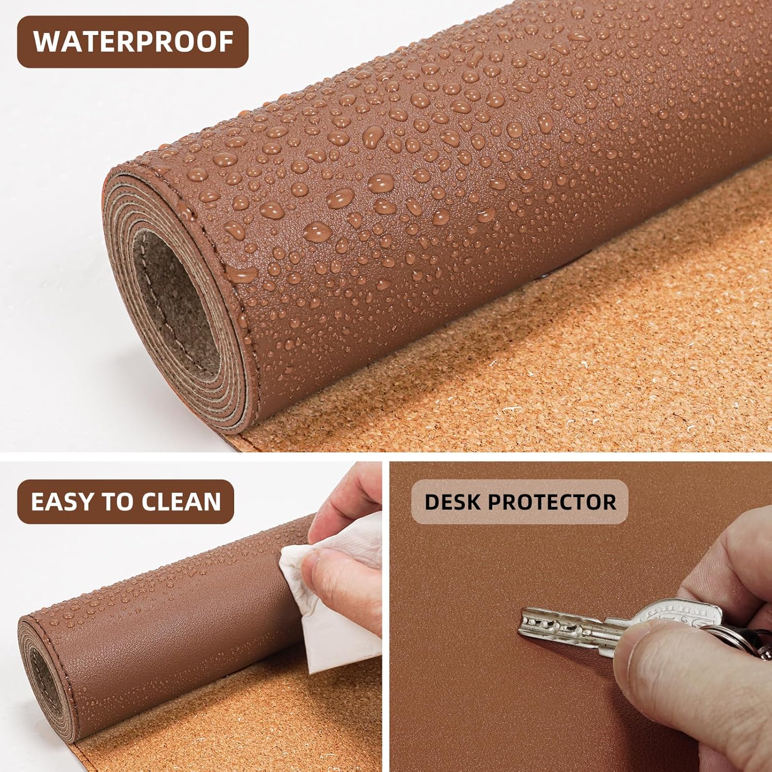 Leather Desk pad Protector, Large Desk mat with Natural Cork & PU Leather,Mouse pad,Non-Slip Office Desk Mat,Waterproof Desk Writing Pad for Office and Home (47in*17in, Brown)