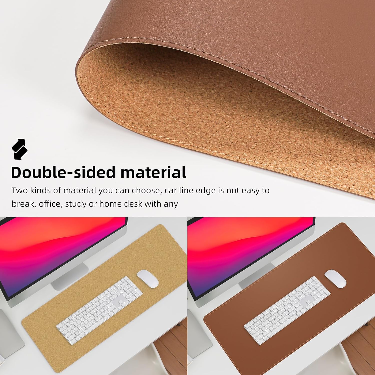 - Double-Sided Design: Choose between two different materials to match your desk and enjoy the high-quality stitching that adds durability and a touch of sophistication to your table mat.