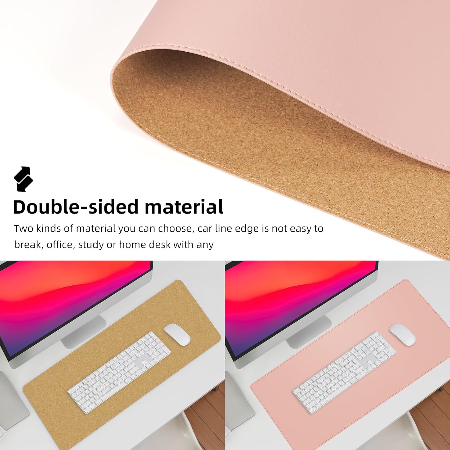 Leather Desk pad Protector, Large Desk mat with Natural Cork & PU Leather,Mouse pad,Non-Slip Office Desk Mat,Waterproof Desk Writing Pad for Office and Home (35in*17in, Rose Pink)