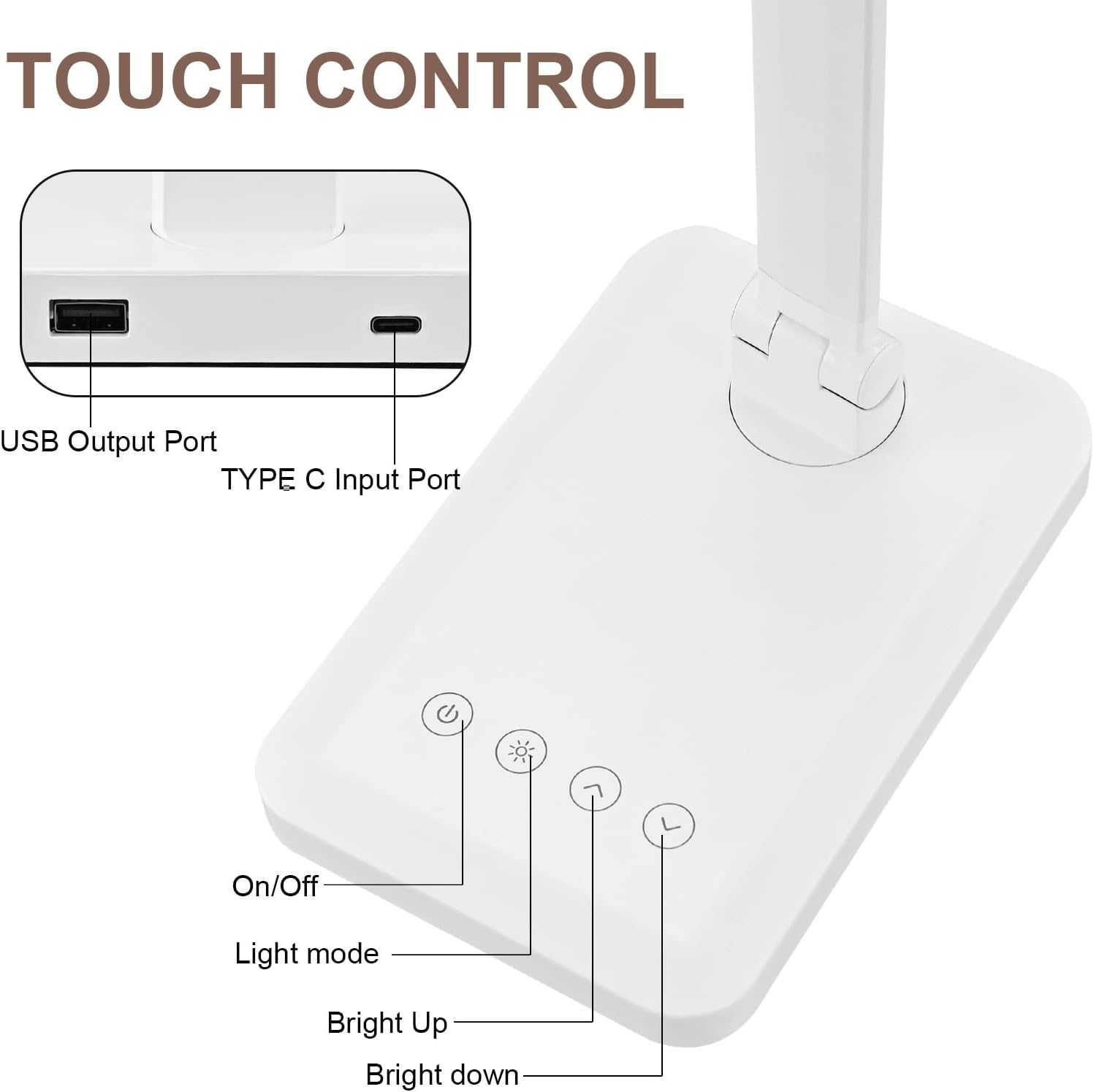 - 【Folding & Flexible with USB Charging Port】This Flexible office lamp with 90° rotating axis base for greater lighting range and flexibility can be folded for saving space and it can be rotated for perfect position you want. Table light is integrated with USB charging port , which makes it more easier and convenient for charging phone.