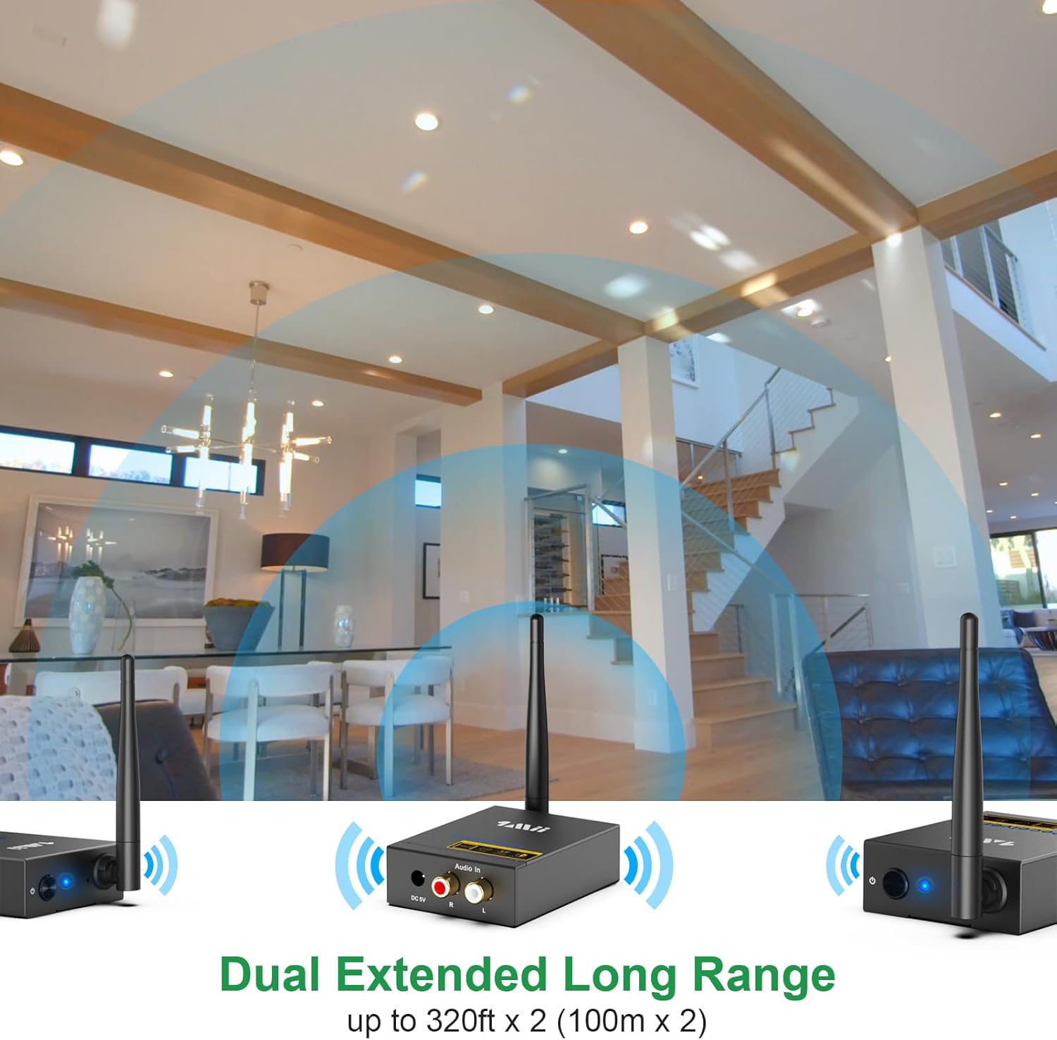 - Special Feature : 2.4Ghz Wireless Audio Transmitter and Receiver, 20ms Low Latency, 320ft Long Range Wireless Audio Adapter, HiFi Sound Quality up to 24bit/ 192kHz, Two Receivers for 2 Powered Speakers 2.4Ghz Wireless Audio Transmitter and Receiver, 20ms Low Latency, 320ft Long Range Wireless Audio Adapter, HiFi Sound Quality up to 24bit/ 192kHz, Two Receivers for 2 Po… See more