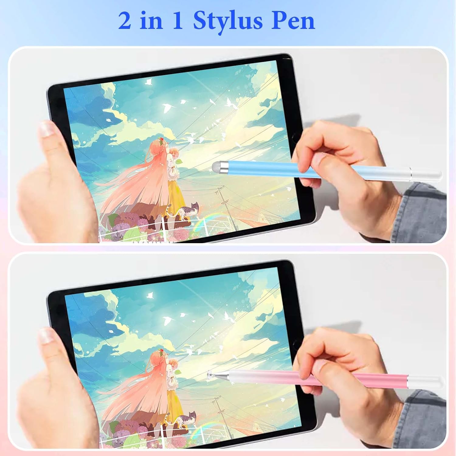 - 【2 in 1 Design】Luntak New 2-in-1 design apple pen -- end has a clear disc tip that lets you see the precise pointing position on the screen, and the other end has a durable fiber tip for browsing or scrolling the web, effectively protecting the screen from fingerprints or smudges.
