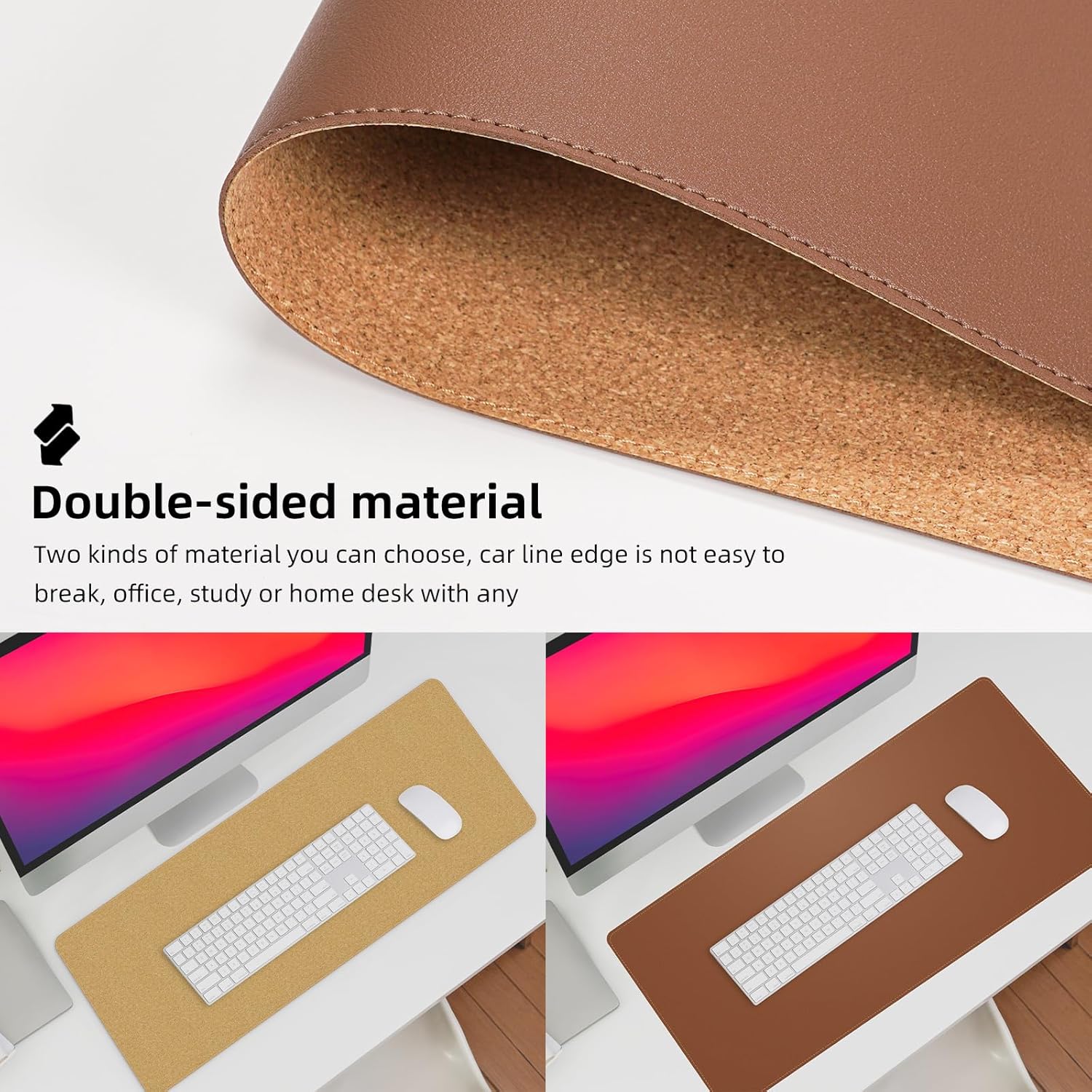 - Double-Sided Design: Choose between two different materials to match your desk and enjoy the high-quality stitching that adds durability and a touch of sophistication to your table mat.