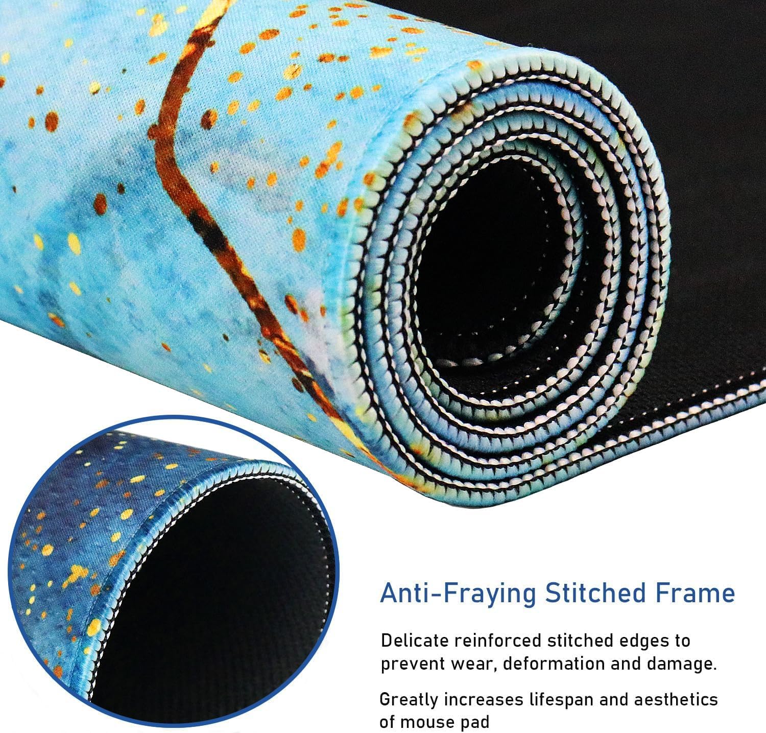 Large Gaming Mouse Pad with Stitched Edges, (31.5X15.7In) Durable Non-Slip Natural Rubber Base, Waterproof Computer Keyboard Pad Mat for Esports Pros/Gamer/Desktop/Office/Home- Marble Blue