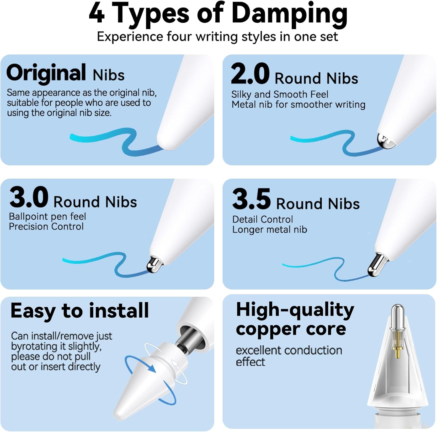 - 【METAL TIPS】:This metal tips is designed with a rounded-edge design,Use the metal ones are for more precise control and a smoother writing experience. Don't worry scratch your screen.