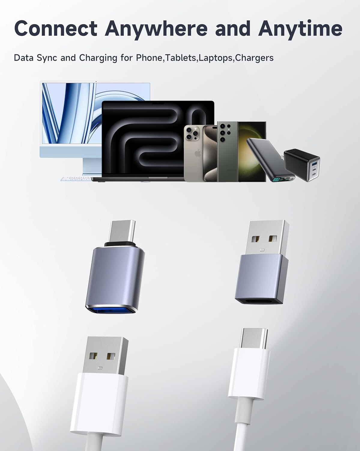- Compact & Portable 4-Pack Bundle:Get 2× USB-C to USB-A + 2× USB-A to USB-C adapters in a lightweight, pocket-friendly set. Ideal for travel, office, and home use, ensuring you always have the right OTG converter for any situation
