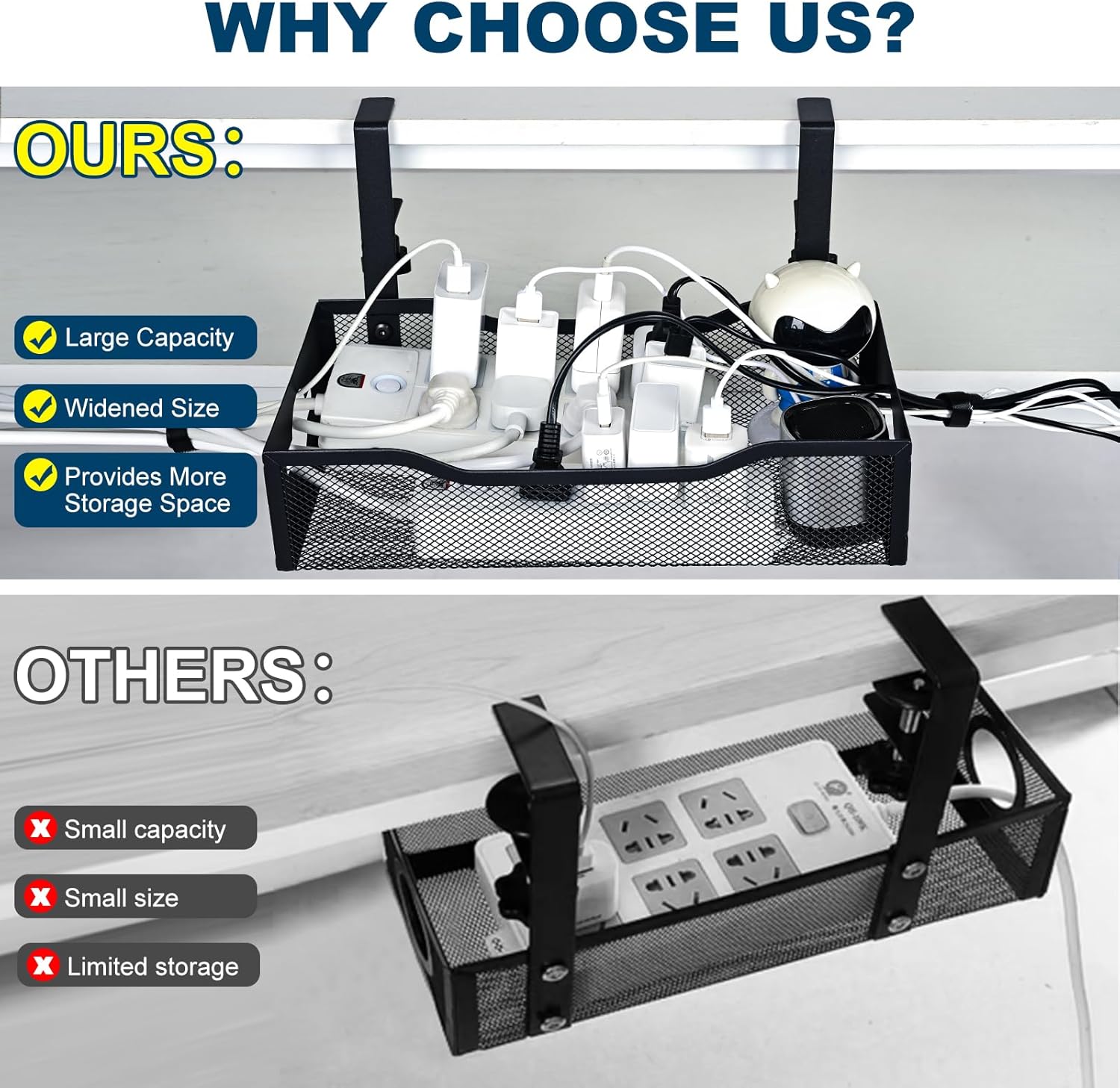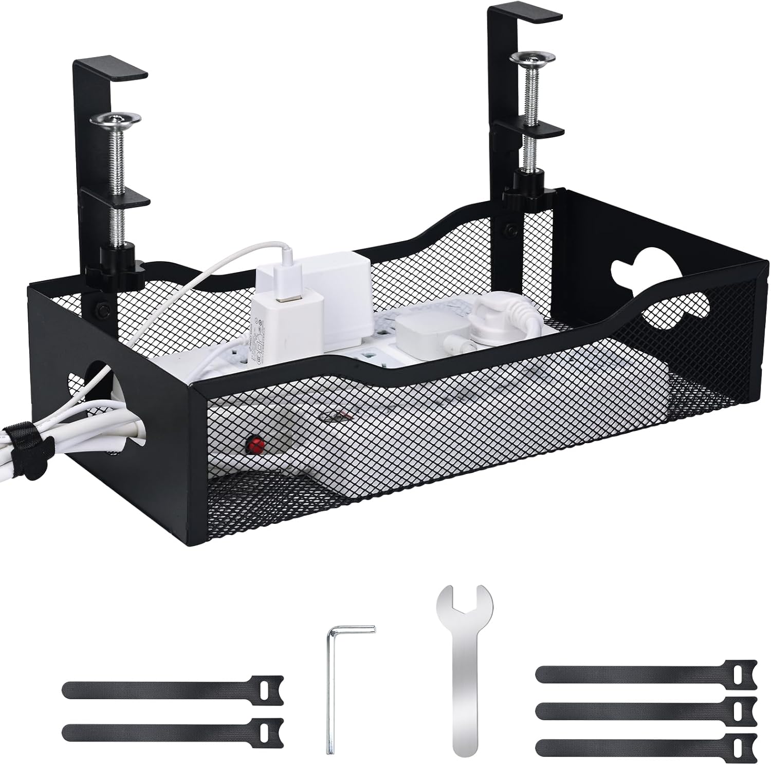 - Cable Clutter Elimination & Accessibility-Organize cords effortlessly with 360° access points for USB chargers,cables, and power adapters. The open-grid design allows easy adjustments and additions, while integrated cable ties (included) keep wires neatly bundled. Ideal for maintaining a clean, professional environment and reducing tripping hazards.