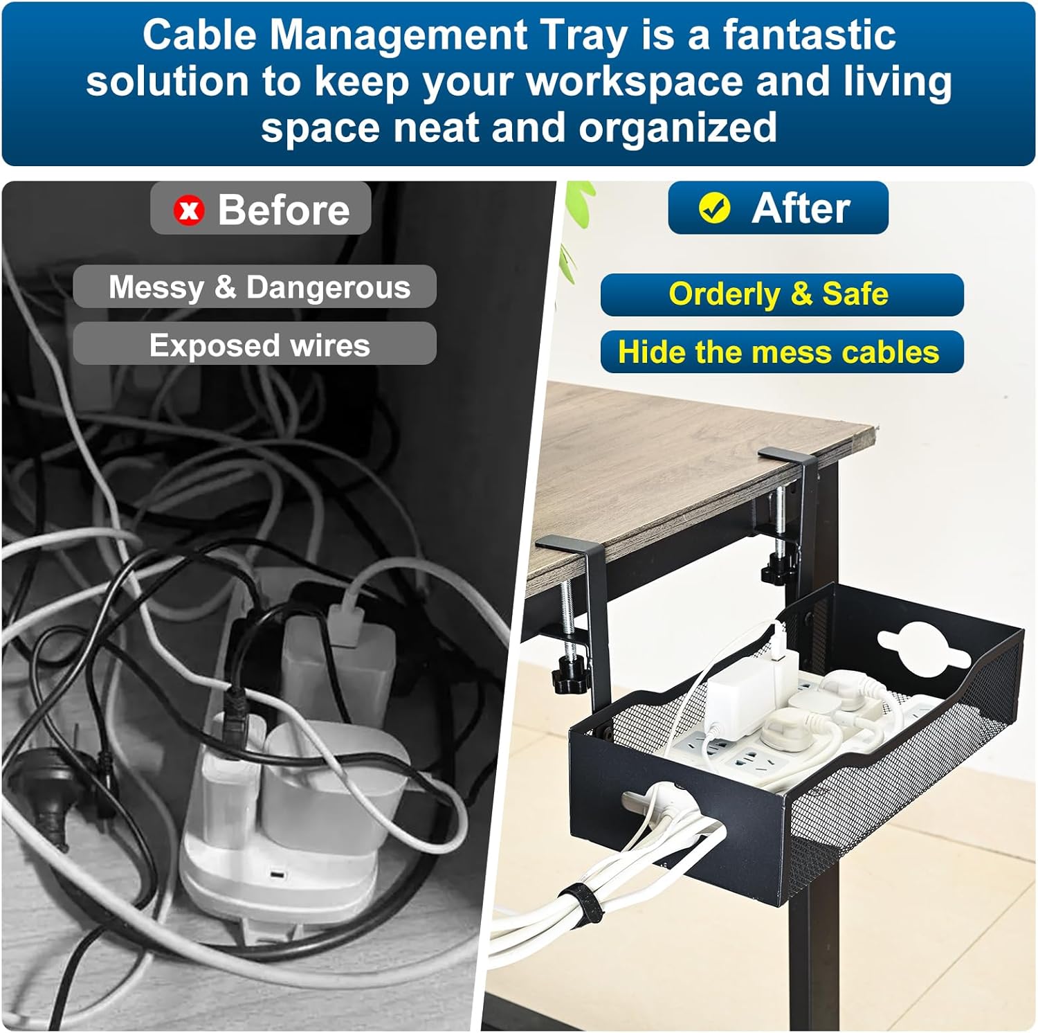 - Enhanced Safety Features - This cable management tray is designed with safety in mind. The tray has smooth edges to prevent cuts when handling cables. Its sturdy construction ensures that it won't easily tip or break, keeping your power strips and cords stable. Additionally,it helps keep flammable cables away from direct contact with heat sources,further reducing fire risks.