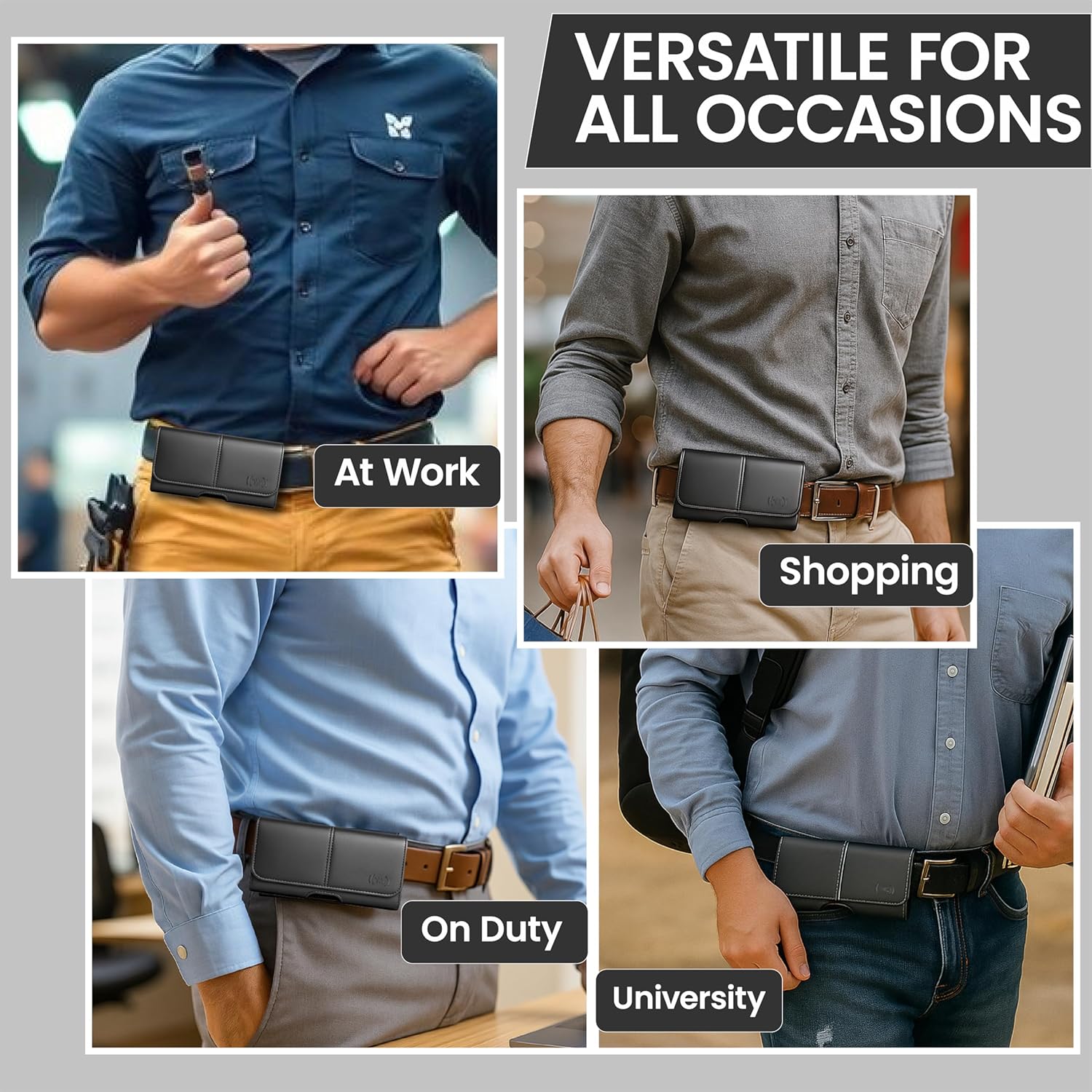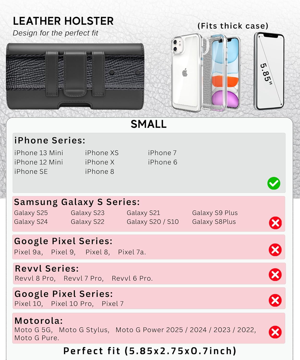 - ๐๐ง๐ข๐ฏ๐๐ซ๐ฌ๐๐ฅ ๐๐จ๐ฆ๐ฉ๐๐ญ๐ข๐๐ข๐ฅ๐ข๐ญ๐ฒ โ ๐ ๐ข๐ญ๐ฌ ๐๐๐ญ๐๐ฌ๐ญ ๐๐จ๐๐๐ฅ๐ฌ: This Cell Phone Holder for belt, Fits iPhone 13/12 Mini, SE, Xs / X, 8, 6s, Fits slim Horizontal Phone Pouch & heavy-duty cases up to (5.8"W x 3"H0), screen (see size chart).
