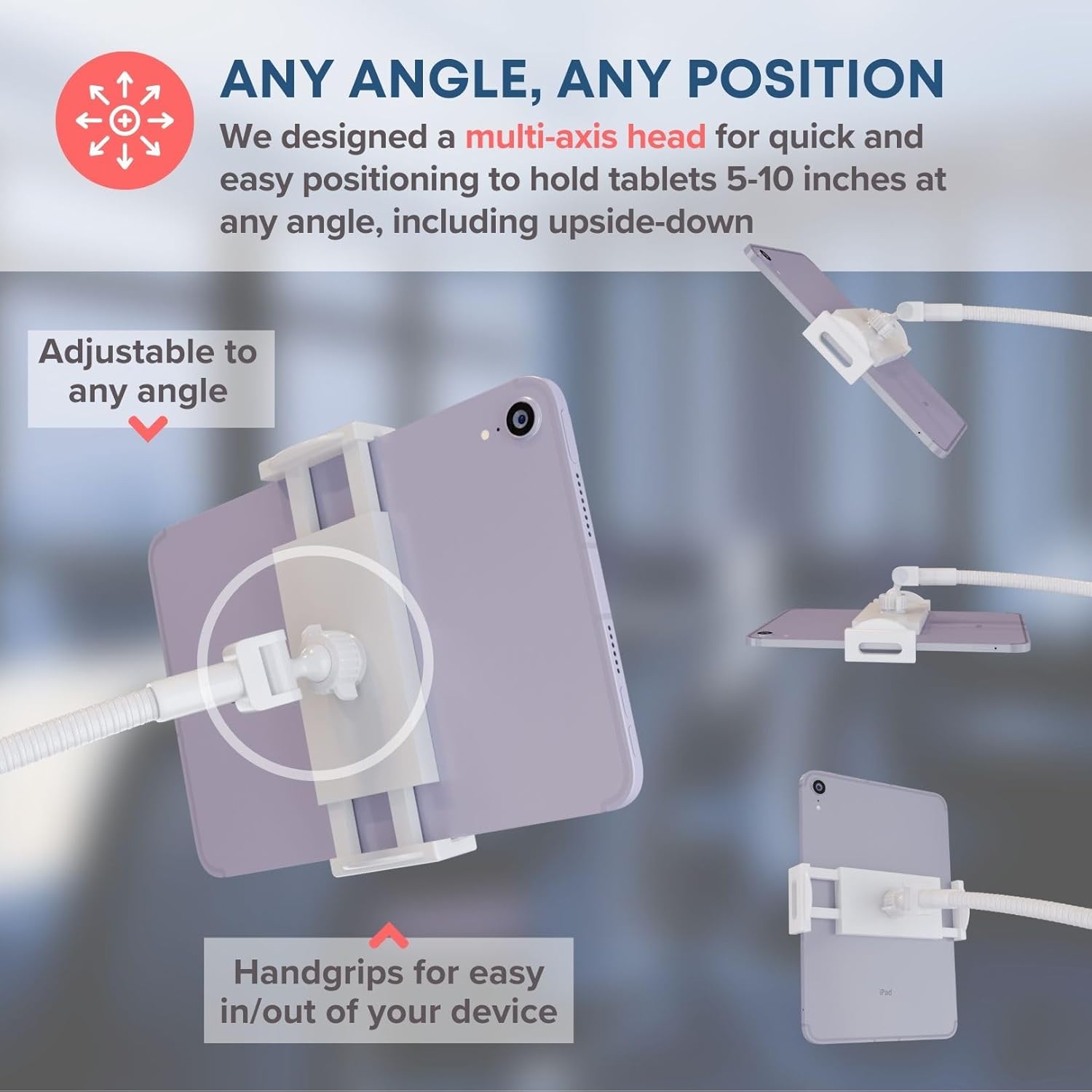 - UNPARALLELED DESIGN: Discover the excellence with the new LEVO, featuring a proprietary multi-axis head for swift and precise positioning of yaw, tilt, and roll, ensuring optimal tablet placement at any angle, even upside-down. Elevate your experience with height adjustability ranging from 30 to 60 inches, offering versatility for various settings. The high-quality gooseneck, uniquely crafted by LEVO, maintains its shape flawlessly after bending and minimizes sag.