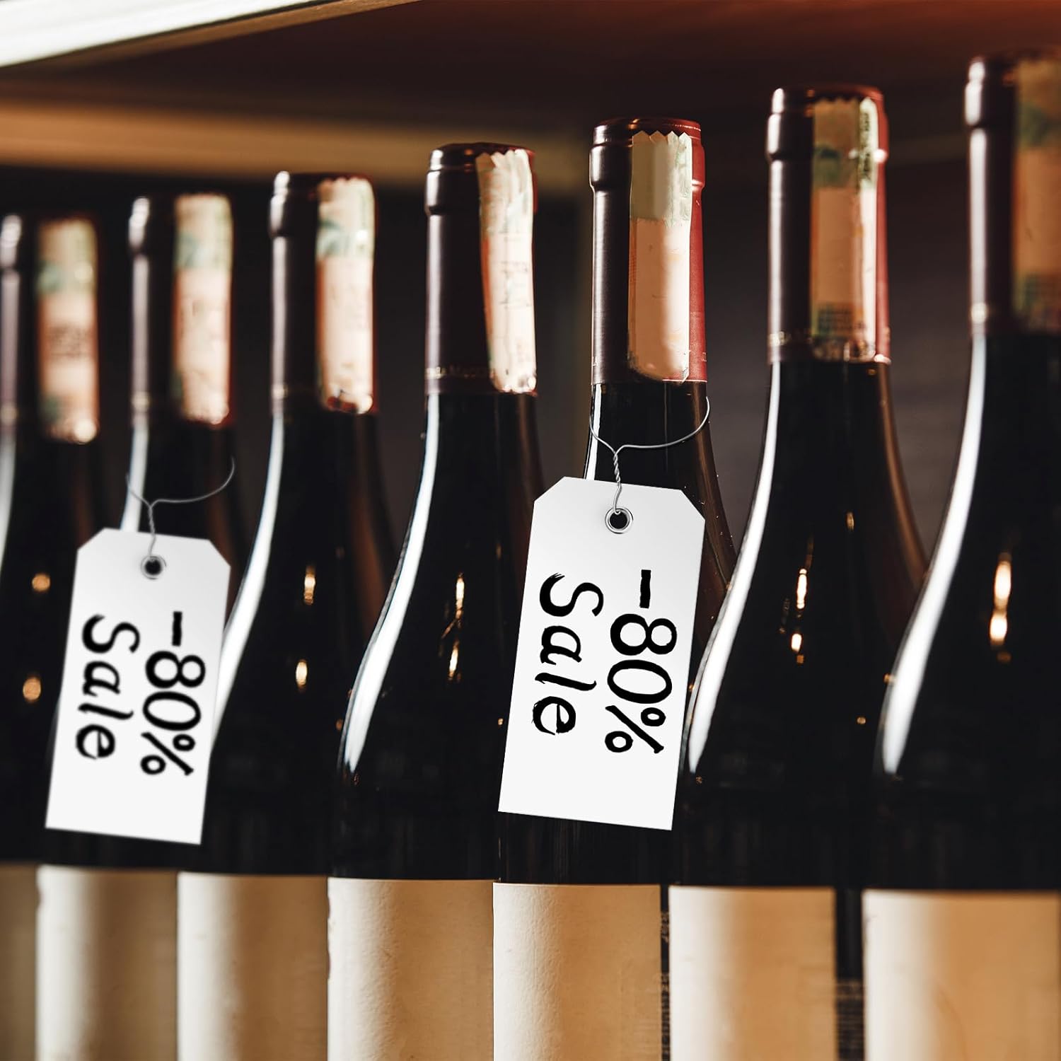 100 White Tags with String - Large Plastic Tags with Reinforced Hole for Price Machines Parts Luggage Garage Inventory (4 3/4" x 2 3/8")