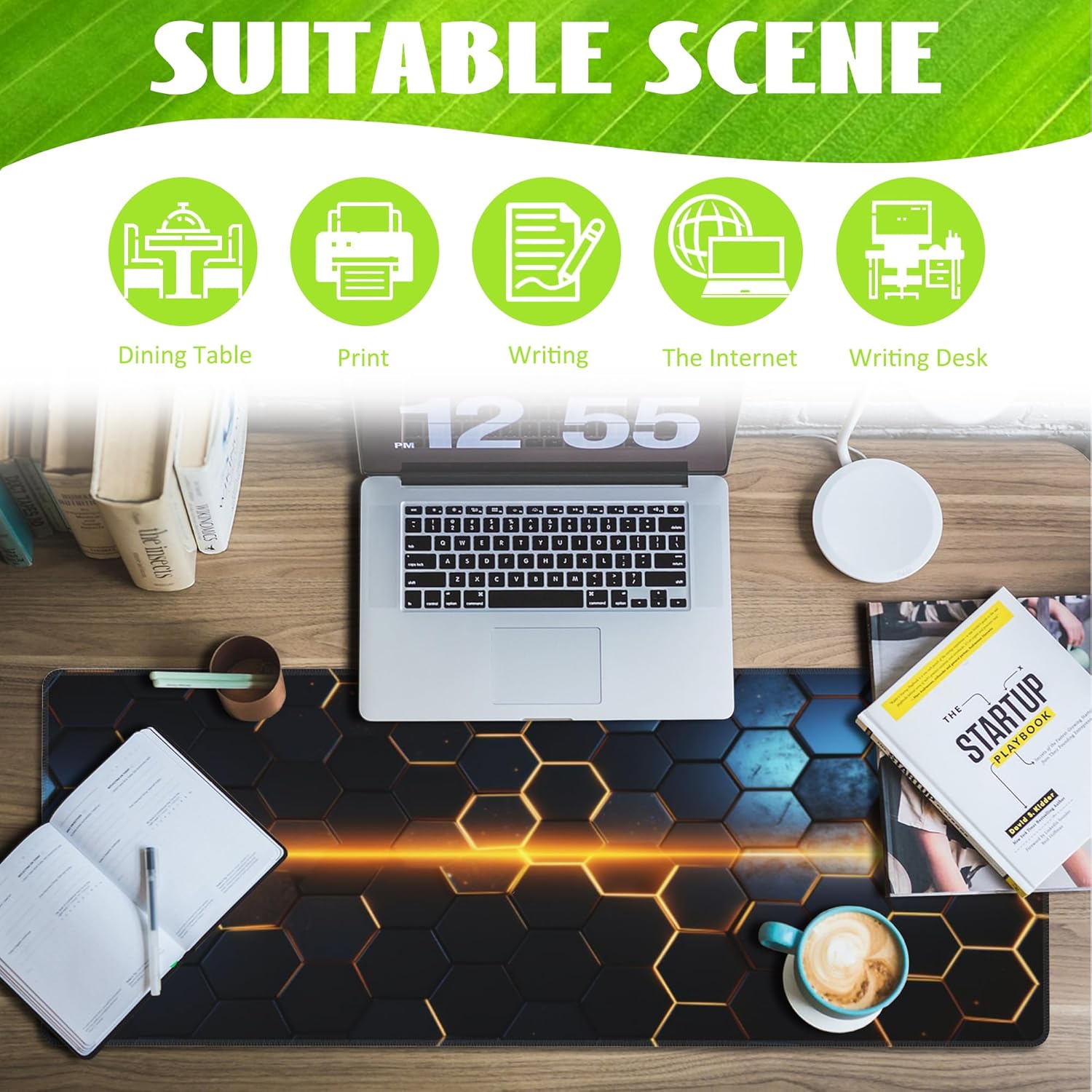 - 🖱️【Anti-Slip Excellence】: The soft and flexible non-slip rubber bottom provides increased friction resistance, keeping the desk pad securely in place on your desktop. It maintains an even flatness, even on imperfect surfaces, allowing you to fully immerse yourself in your work or game without the annoyance of mouse pad movement.
