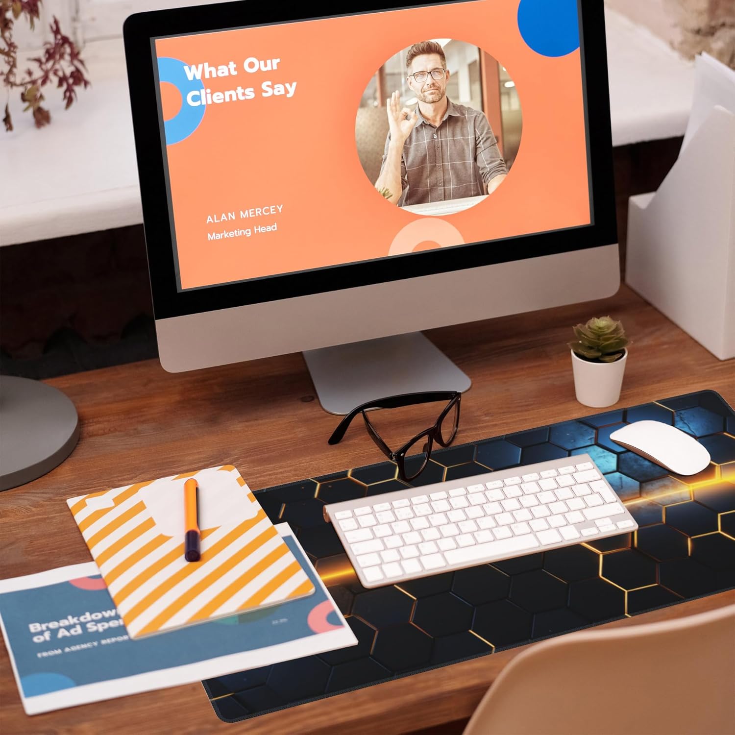Large Gaming Mouse Pad for Desk,Golden Lines Honeycomb Technology Desk Mat,Honeycomb Technology Desk Pad,Extended Computer Keyboard Mouse Pad with Non-Slip Base and Stitched Edge,31.5"x11.8"