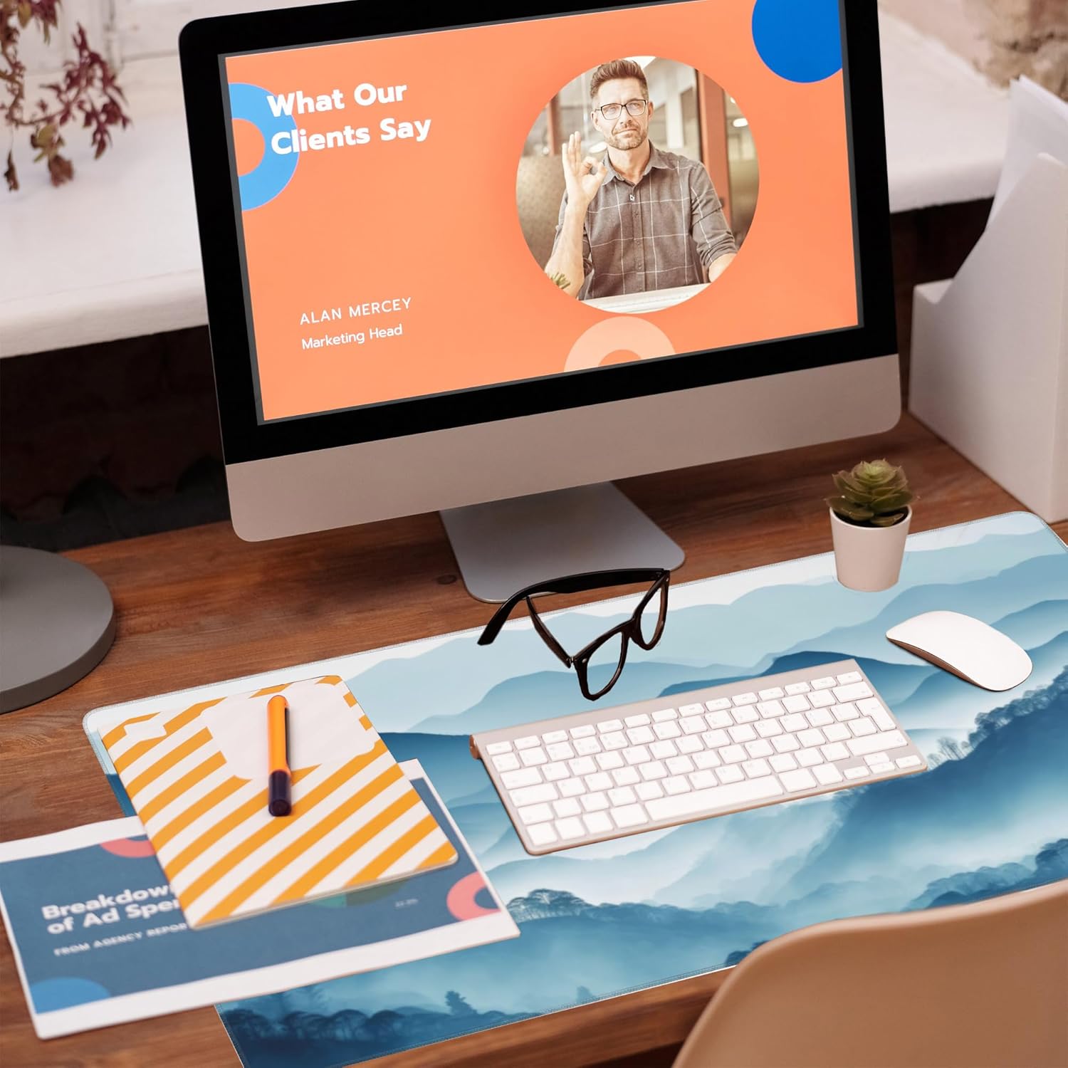 Large Gaming Mouse Pad, Mountain Desk Mat, Misty Forest Mountains Desk Pad, Extended Big Computer Keyboard Mouse Pad with Non-Slip Base and Stitched Edge, 35.4"x15.7"