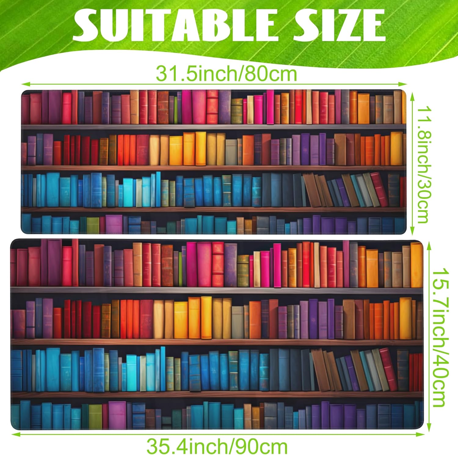 Large Gaming Mouse Pad for Desk,Bookshelves Full of Books Desk Mat,Colorful Books Desk Pad,Extended Big Computer Keyboard Mouse Pad with Non-Slip Base and Stitched Edge,35.4"x15.7"