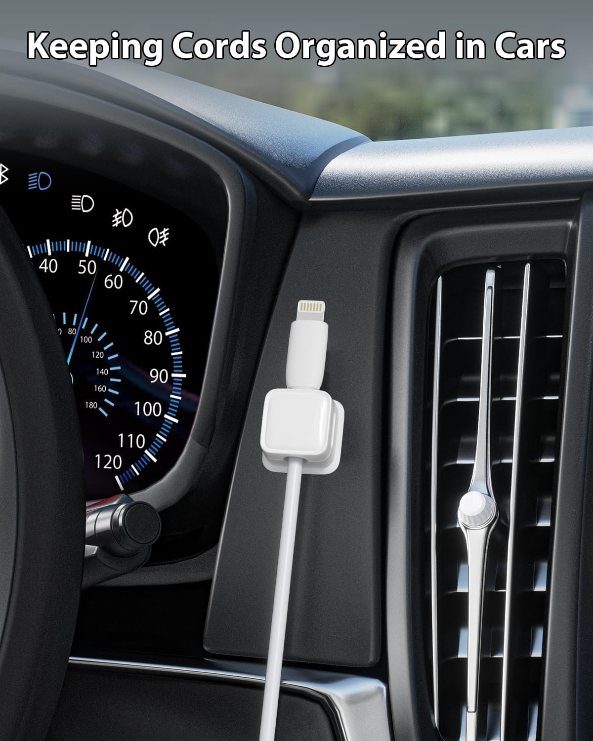 12 Pack Magnetic Cord Organizer Holder,Strong Adhesive Desk Cable Management Easy Open,Organize Phone Charging Cords Wire Holder Organizer Neatly for Home,Office,Car,Desk,Nightstand-White