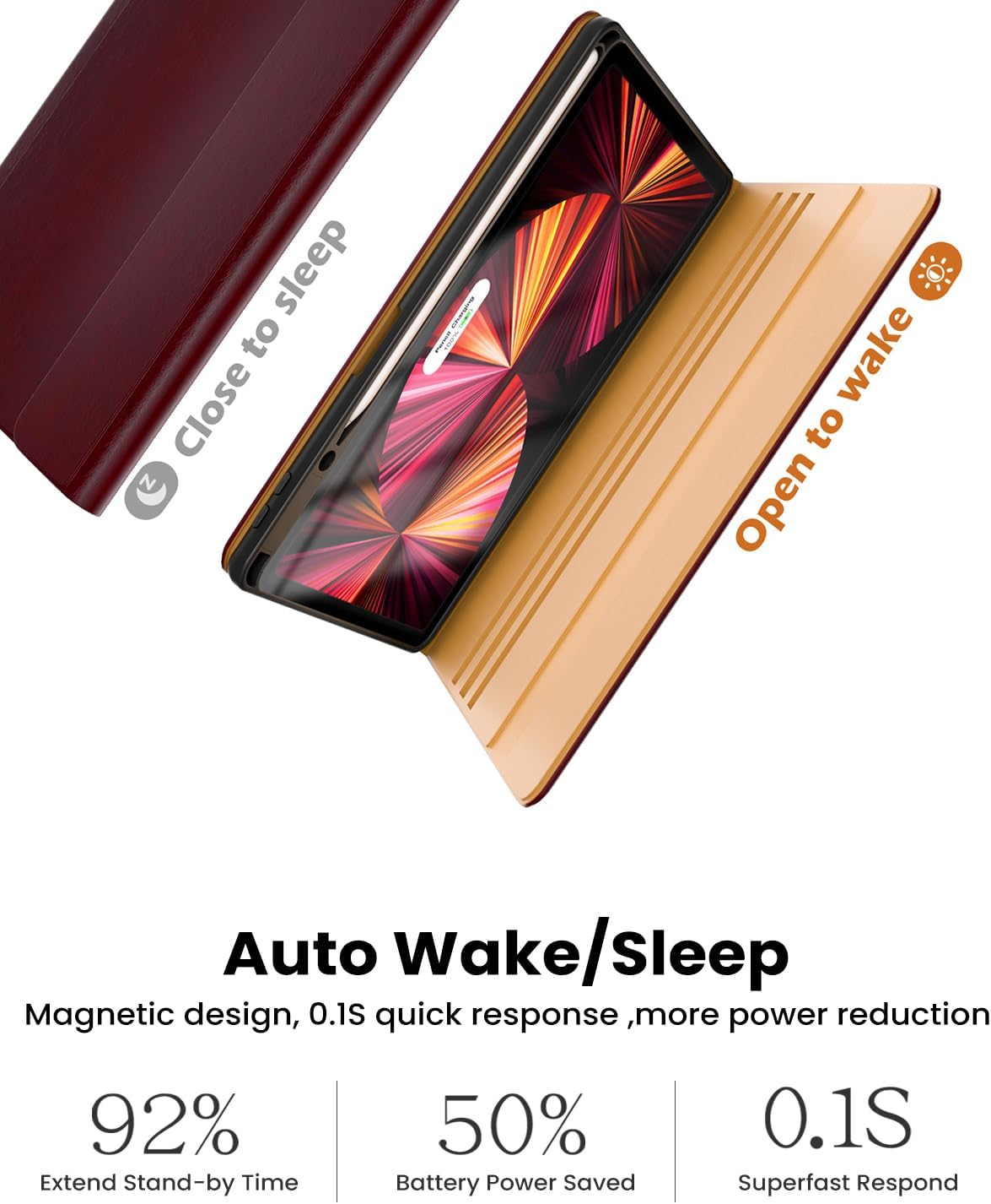 Leather Keyboard Case for iPad Air 5th 4th Generation 10.9 inch Pro 11 1st/2nd/3rd/4th, 7 Color Backlight BT Keyboard Folio with Pencil Holder 2022 2021 2020 2018 (Wine)