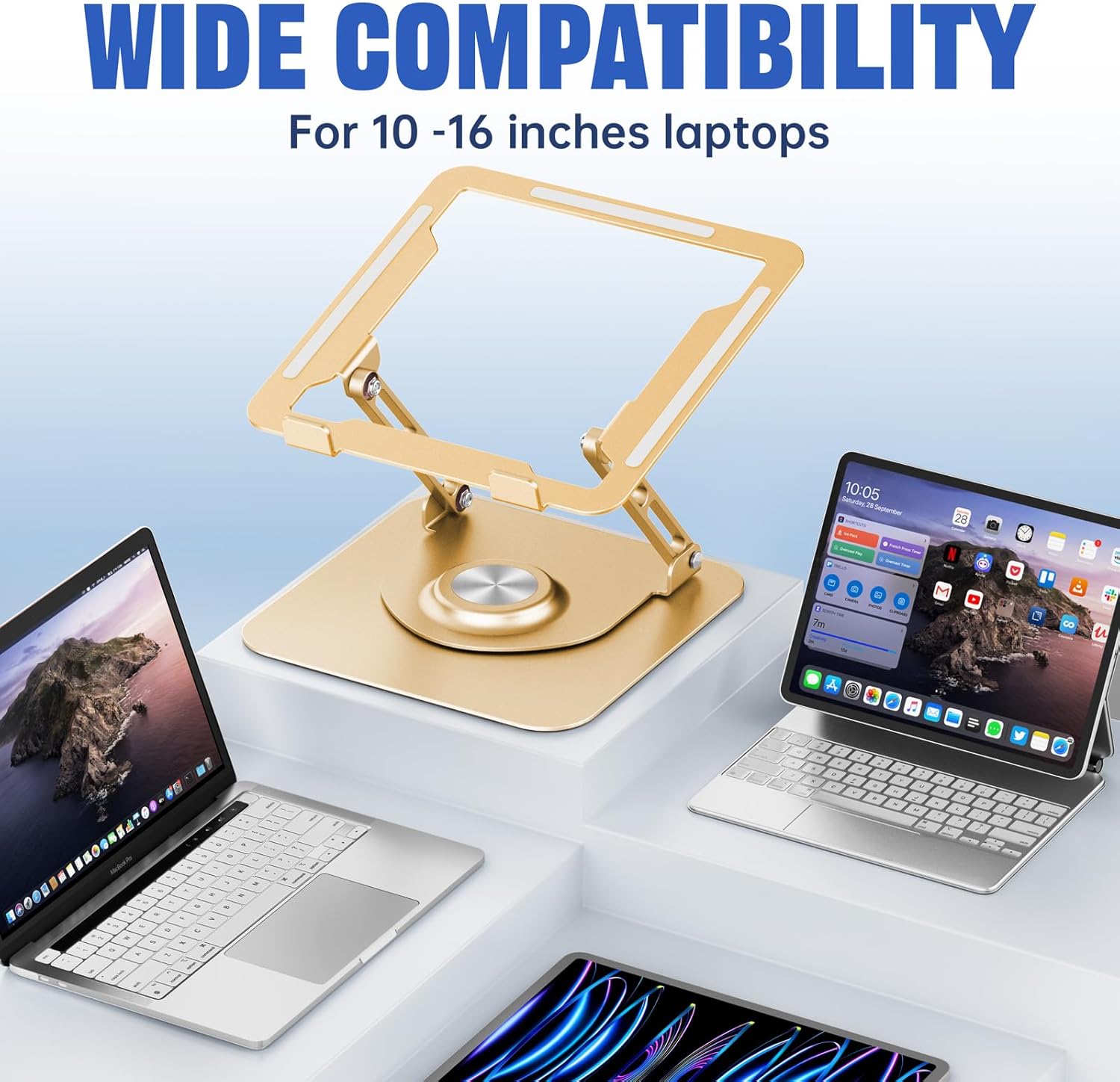- 【Universal Compatibility】 The Computer stand fits all 10-16 inch laptops, including MacBook Air/Pro (12/13/14/16 inch), Dell XPS, HP, Lenovo, Acer, Chromebook, and more. Also supports tablets [if applicable], making it a versatile, high-value addition to your tech setup.