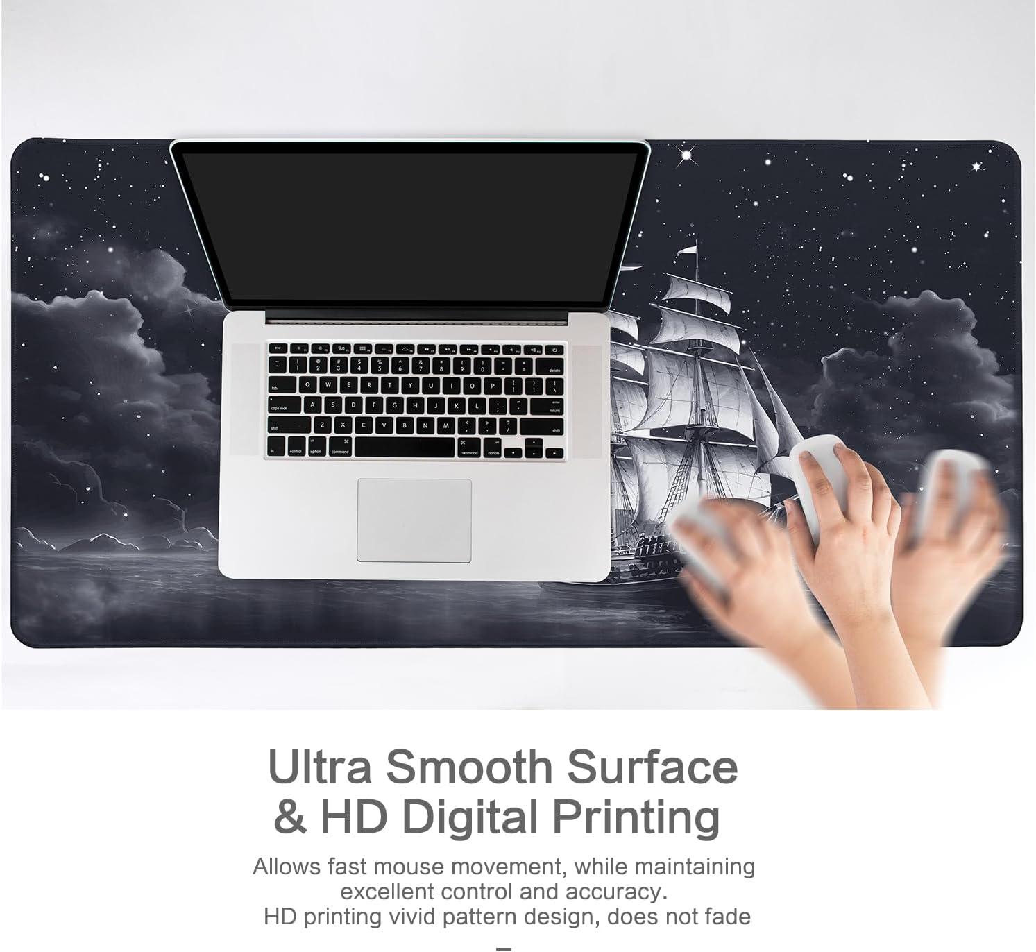 Lokigo Desk Pad, Office Desk Mat, Extended Large Gaming Mouse Pad, Desk Decor Mousepad Keyboard Writing Mat with Non-Slip Rubber Base for Office Laptop Gaming Home, 31.5"x15.7", Nautical Sailboat