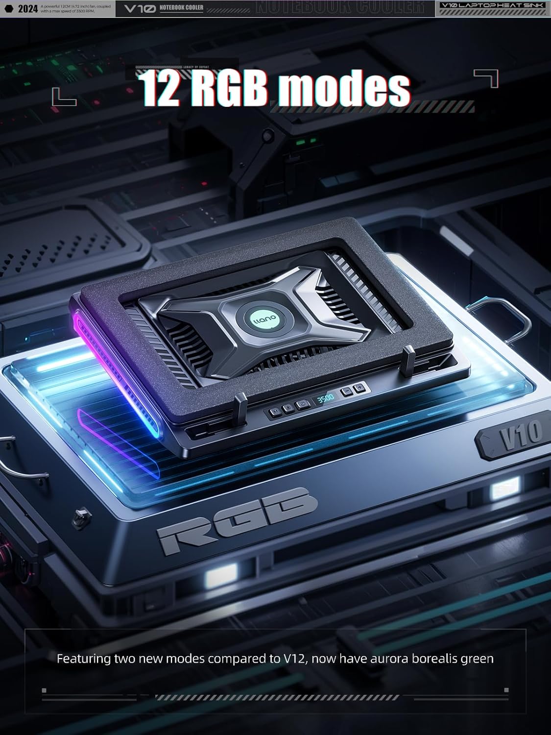 - Immersive RGB Light Show – Customizable with Memory Recall: Elevate your setup with 12 stunning RGB lighting modes, including static, breathing, and color cycling across 5 vibrant hues. The llano laptop fan cooling pad includes a smart memory function that recalls your last lighting preference, creating a personalized experience every time. Whether you're building a laptop cooler inspired rig or just want that perfect gamer vibe, this cooler for laptop gamer blends form with function
