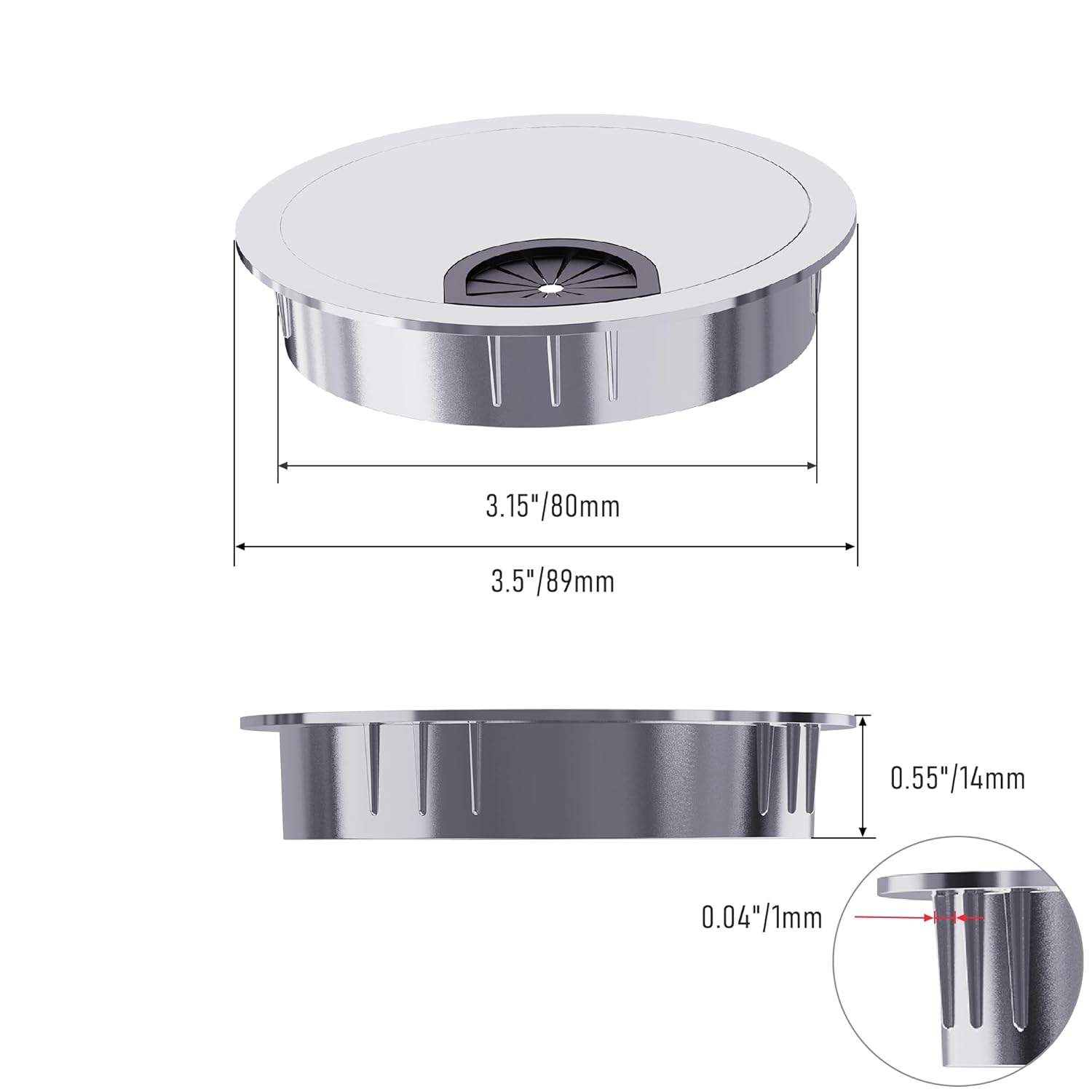 - [Removeable Lid] Desk cord hole cover has a detachable lid that gives the ability to easily adjust and organize wires and cables/plugs through desk hole.