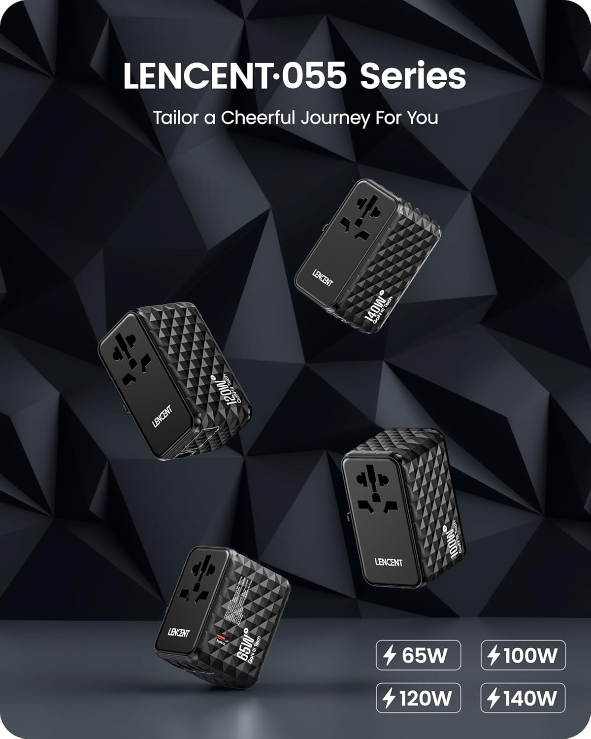 - [140W USB-C Super Fast Charging Port] LENCENT universal power adapter stands out with its 2 high-output USB-C ports, C1 and C2, each capable of delivering a staggering 140W output when used individually, enabling you to charge a MacBook Pro 16” from 0 to 55% in just 30 minutes. The all in one adapter adopts innovative PD 3.1 and QC 4+ fast charging protocols. High power capacity makes it a breeze to fast charge 2 laptops at once and also allows a good power supply even when all four USB sockets are used.