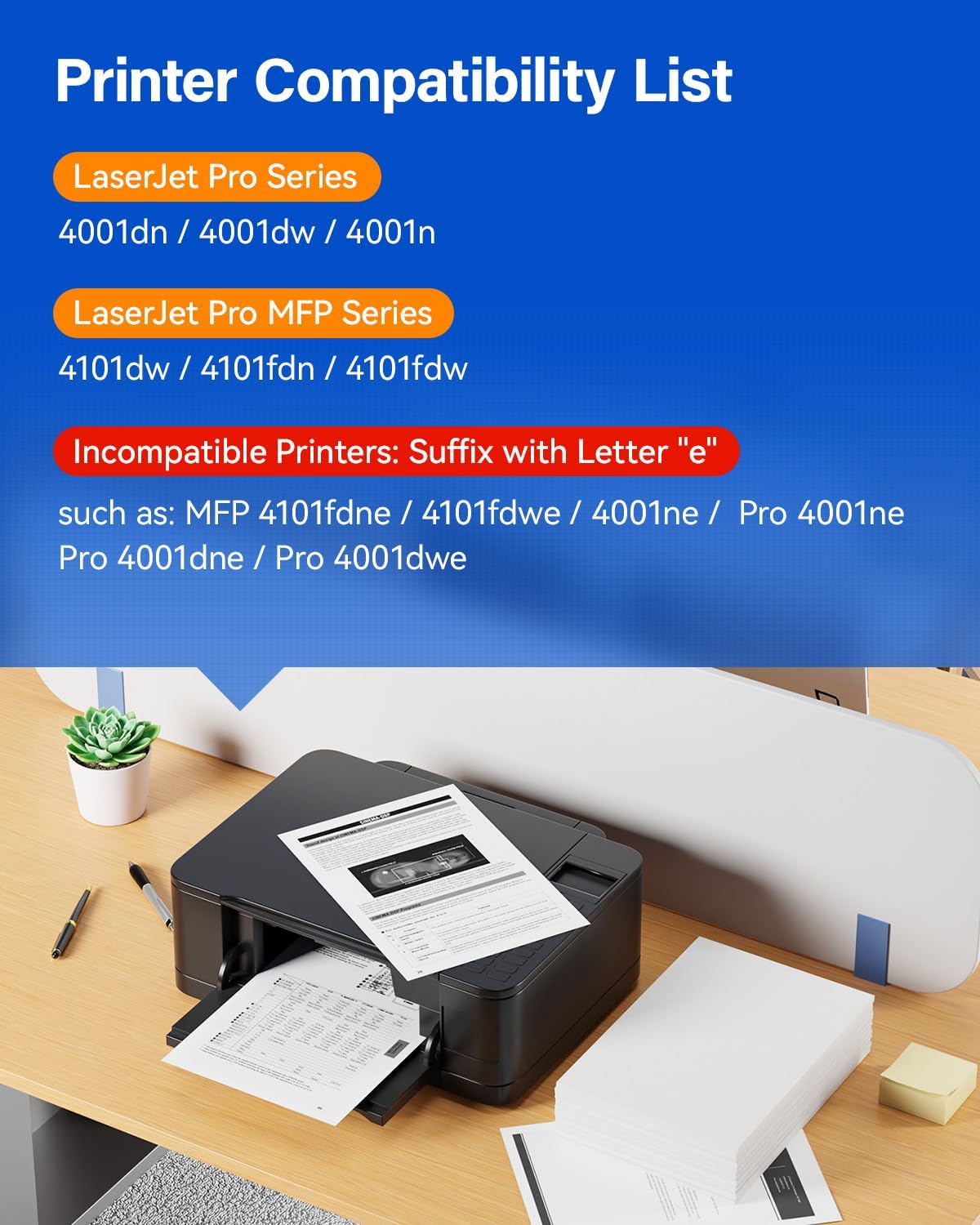 - Compatible with HP LaserJet Pro 4001dn,4001dw,4001n; MFP 4101dw,4101fdn,4101fdw Printer