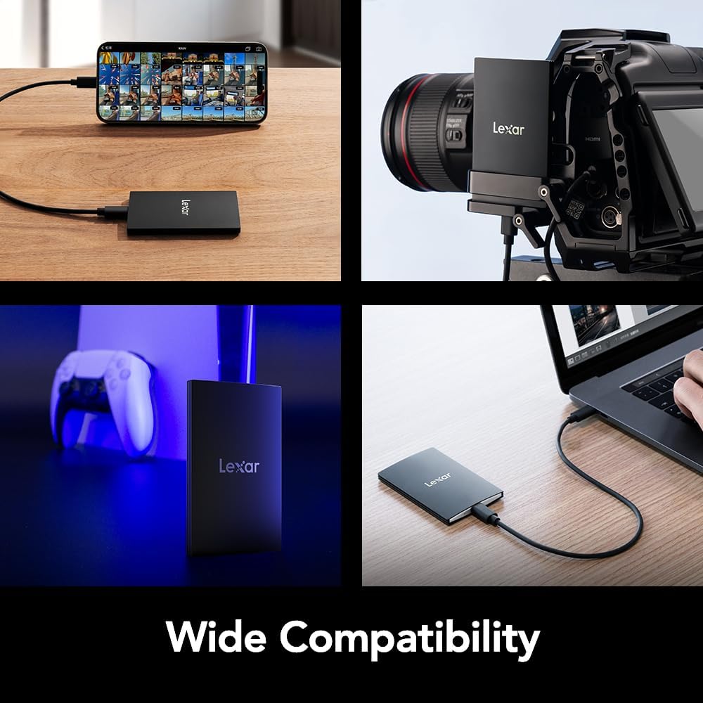 Lexar 1TB SL500 Portable SSD, Up to 2000MB/s, Compatible w/Type-C Laptops, iPhone 15/16, Smartphones, Tablets, PS5, Xbox, USB 3.2 Gen 2x2, Slim & Lightweight, External SSD, Black (LSL500X001T-RNBNU)