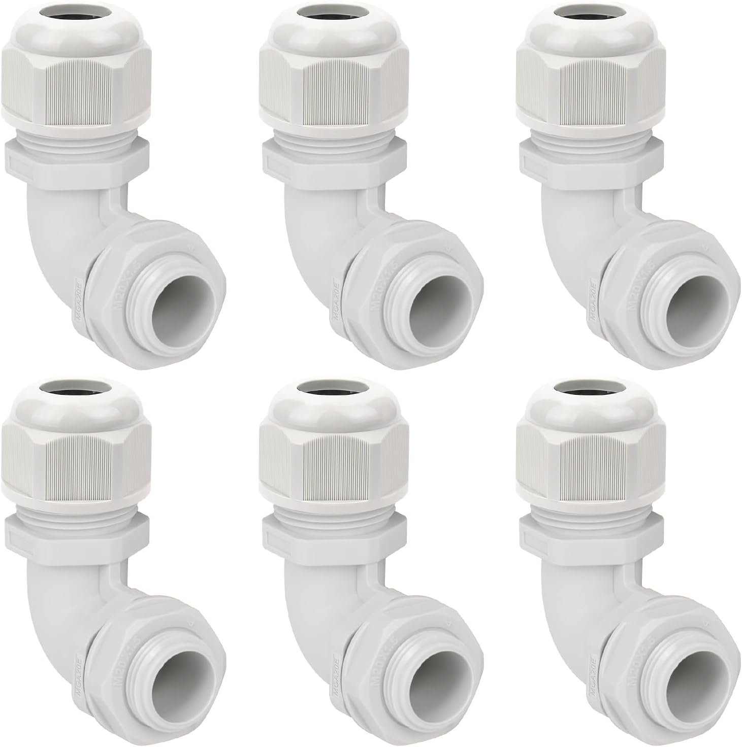 LeMotech M20 Cable Gland, 90 Degree Adjustable 9-14mm Strain Relief, Cord Connectors Nylon Joints with Gaskets, 6 Pcs, Grey