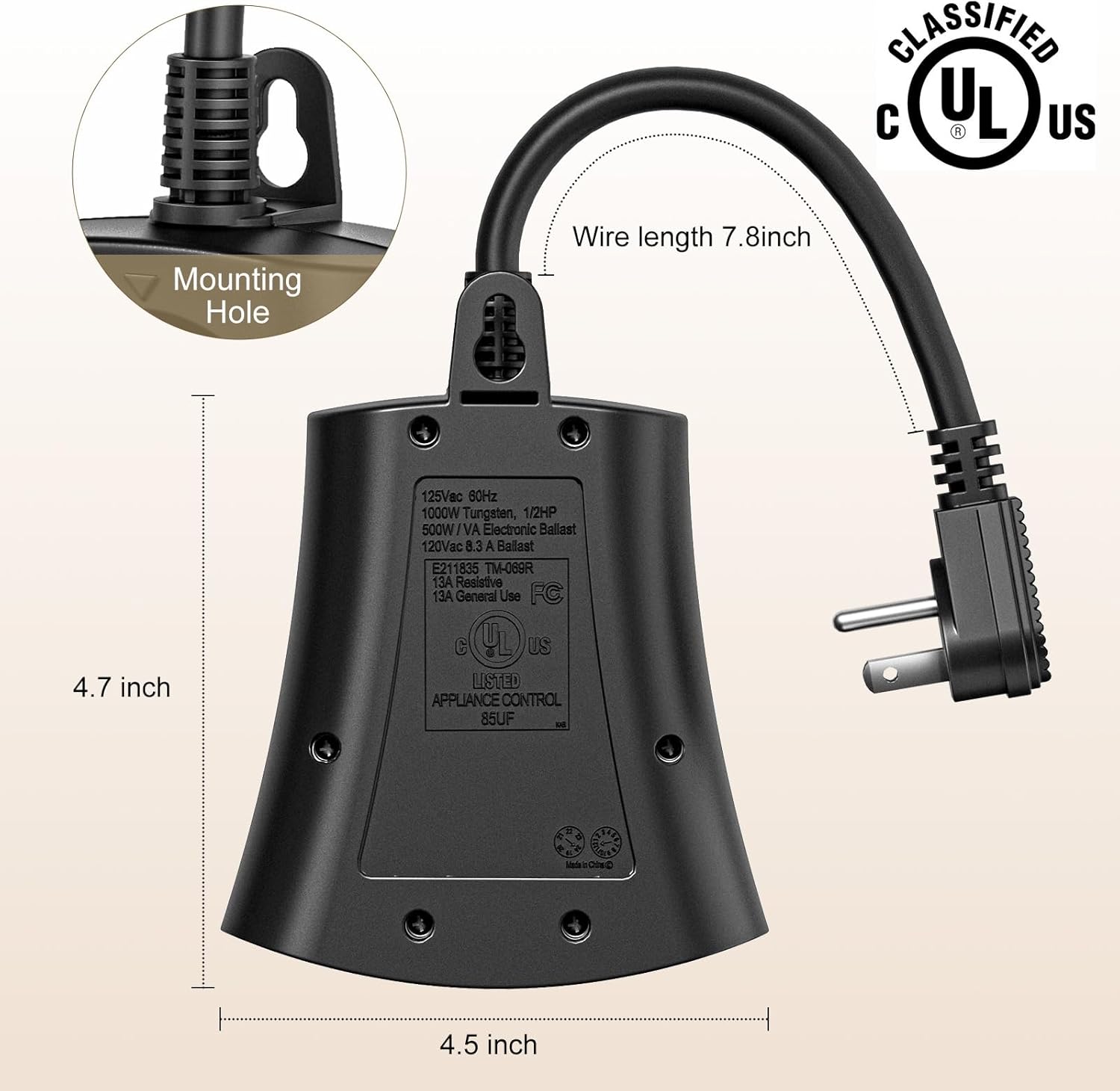 - Reliably and Consciously Processed: UL listed timer for outdoor lights with durable construction, ideal for outdoor and indoor use, 0.5 inch SJTW 14/3C grounded cord and max 15 A ratings can satisfy most electrical household appliances, like fridge, TV, air conditioner, air purifier, air fresher, washer or garden devices or tools