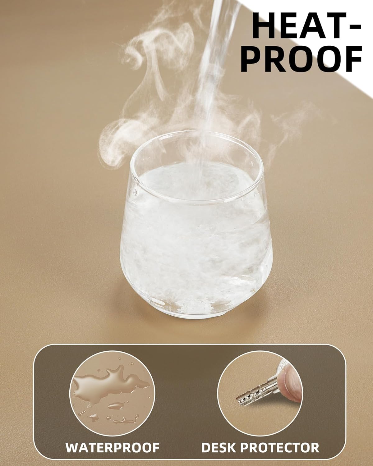 Leather Desk Pad Protector, Mouse Pad, Office Mat, Non-Slip PU Leather Blotter, Laptop Pad, Waterproof Writing Pad for Office and Home (Apricot, 31.5" x 15.7")