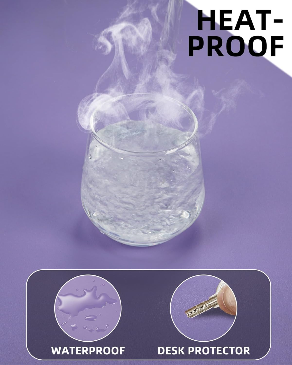 Leather Desk Pad Protector, Purple Desk pad, Office Desk Mat, Non-Slip PU Leather Desk Blotter, Laptop Desk Pad, Waterproof Desk Writing Pad for Office and Home (Light Purple, 31.5" x 15.7")