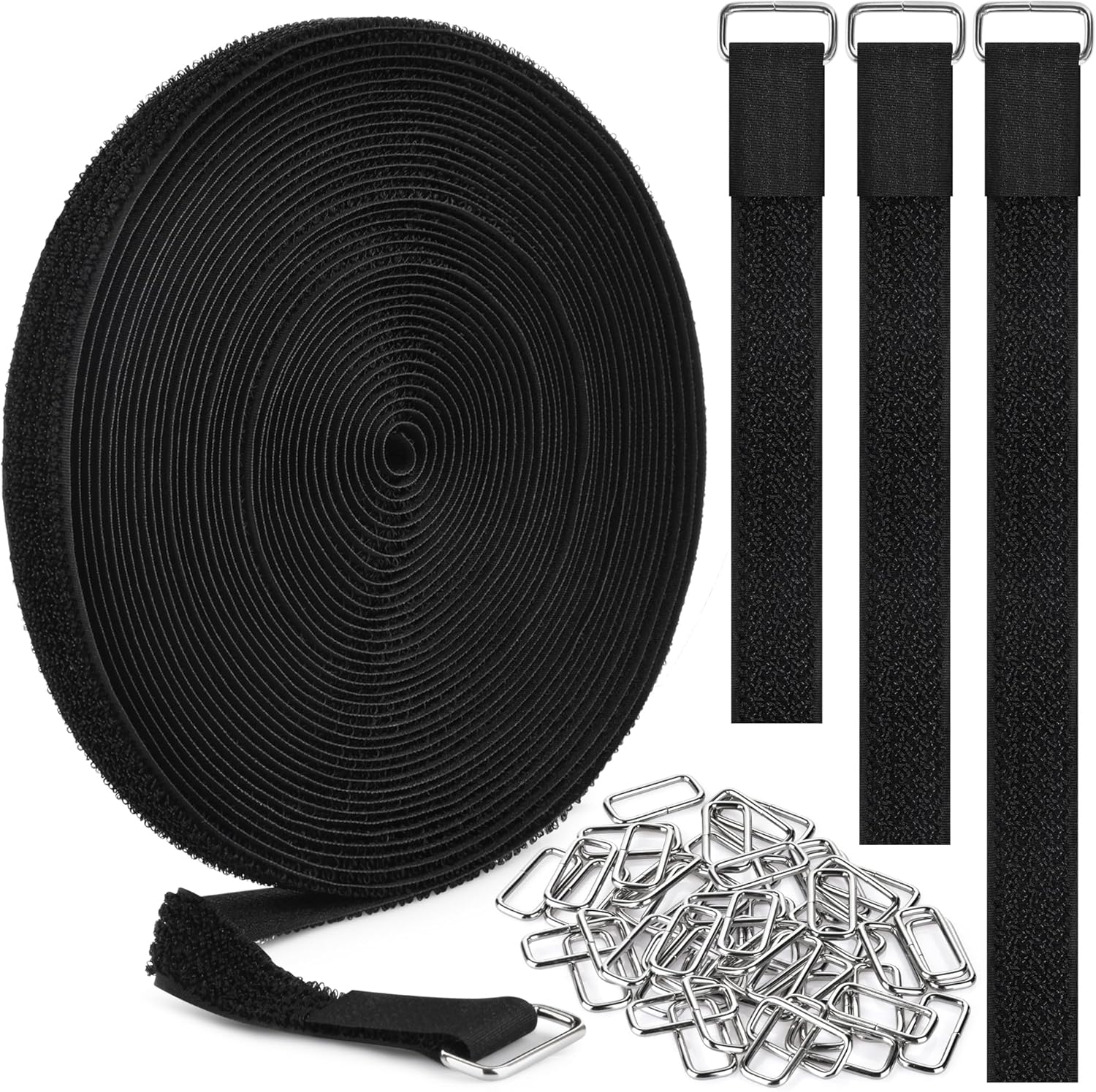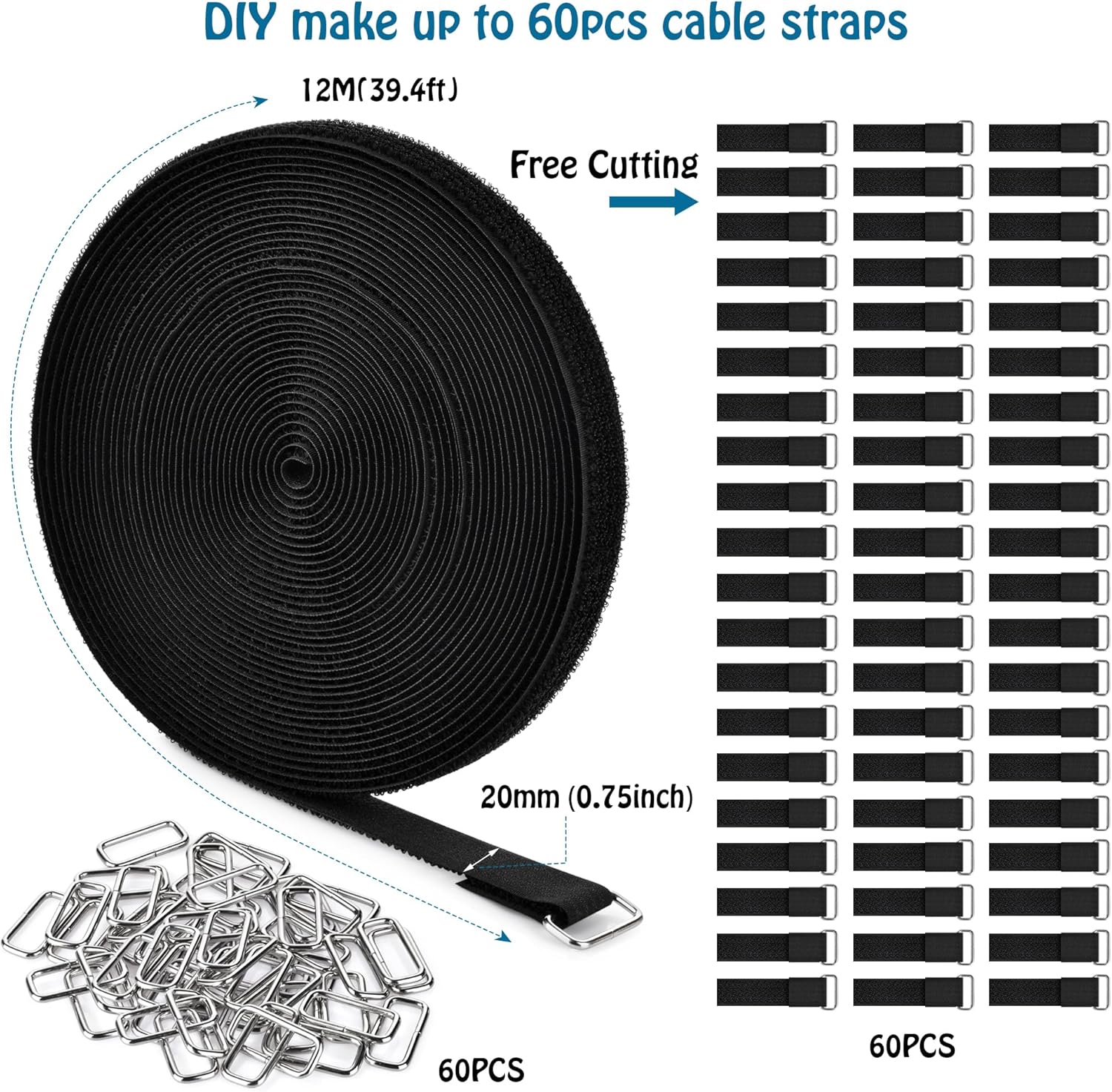 0.75" x39.4ft Hook and Loop Straps with 60 Buckles Adjustable Cut-to-Length Cable Ties - Reusable Nylon Fastening Tape Cable Straps for Storage or Organization (0.75in x 39.4ft)