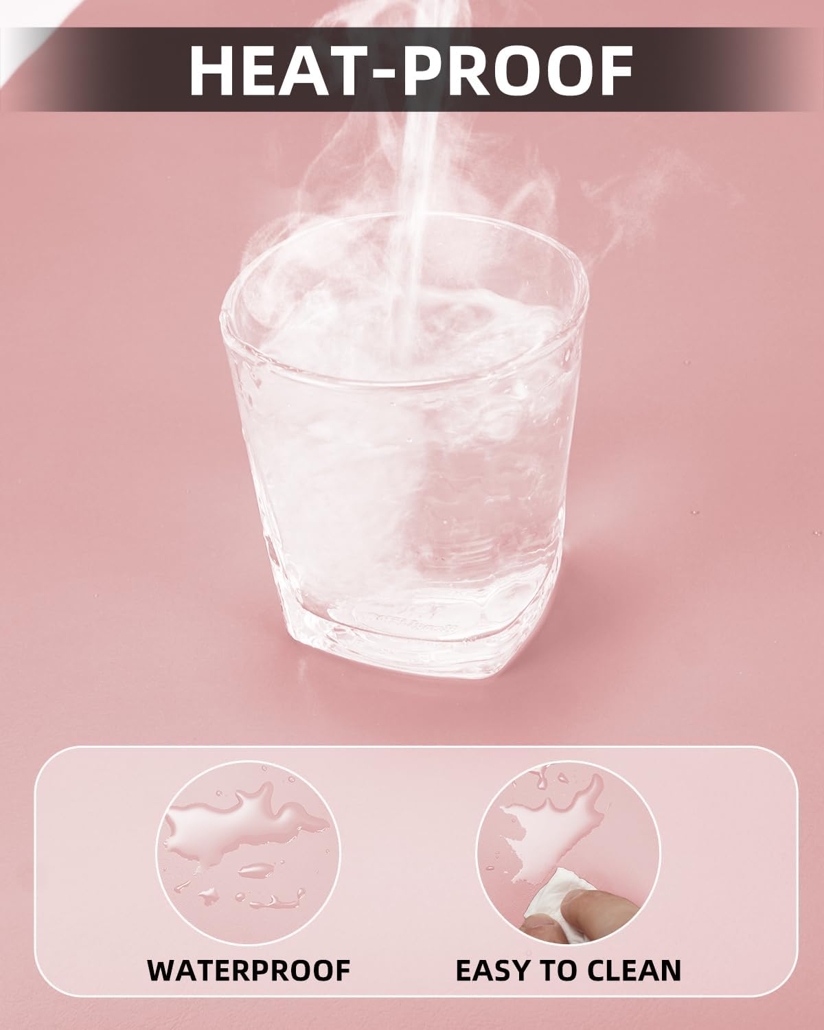 Leather Desk Protector, Non-Slip PU Laptop Mat for Office/Home - Waterproof Writing Pad (31.5"x15.7", Rose Pink)